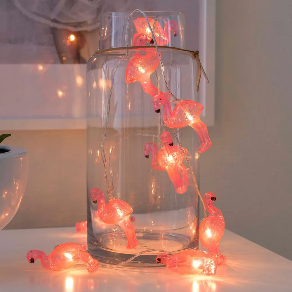 Perfekt til fester eller seje dekorationer i caribisk stil: Flamingos LED-lyskæde har 10 plastdyr, der er designet som lyserøde flamingoer og udstyret med varme hvide lysdioder på indersiden. Da det er batteridrevet, kan fe-lysene dekoreres næsten hvor som helst. Den praktiske 6-timers timer muliggør også målrettet og automatisk til- og frakobling.