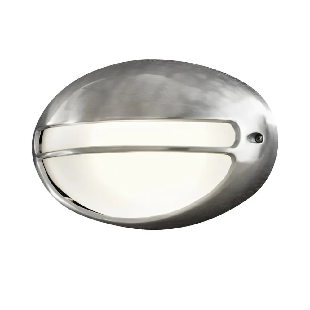 Torino er en oval, moderne designet udendørs væglampe med hvidt, satineret lampeglas, der brydes af en smal metalstiver. Det matte glas sørger for en yderst behagelig, indirekte belysning.