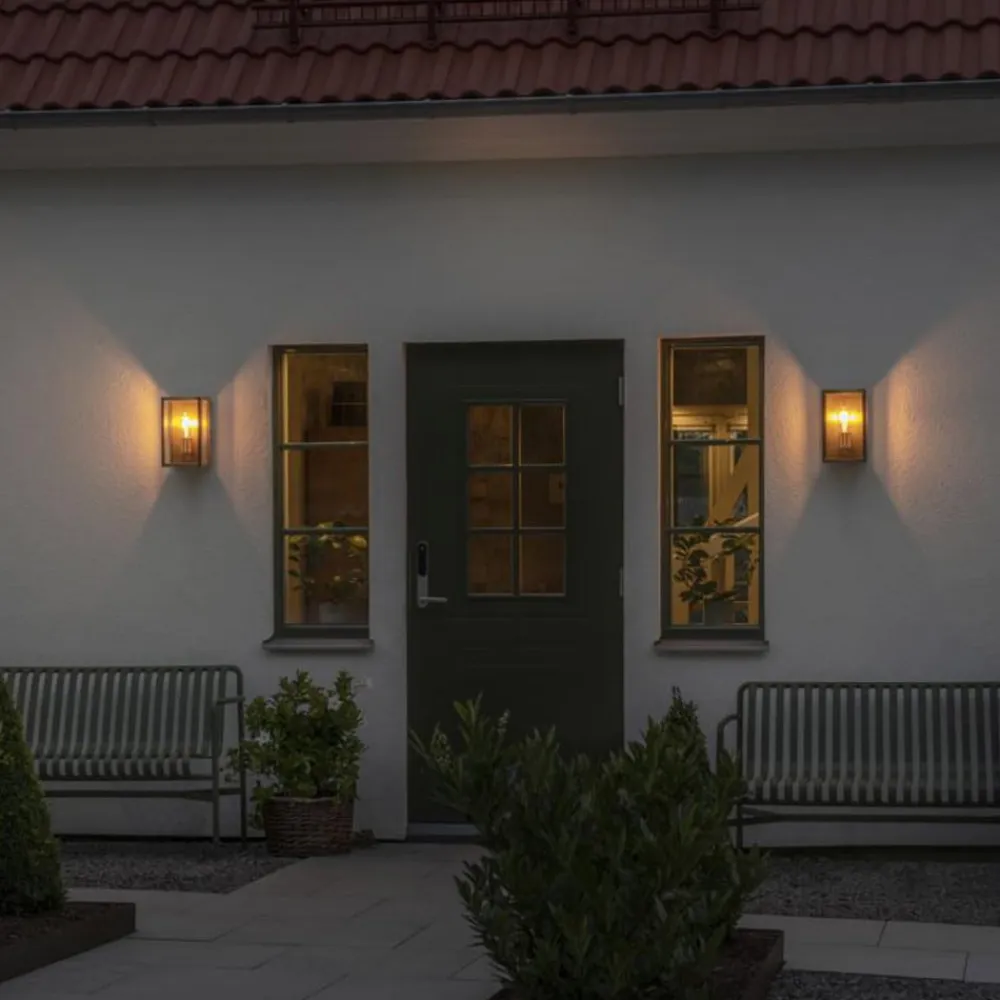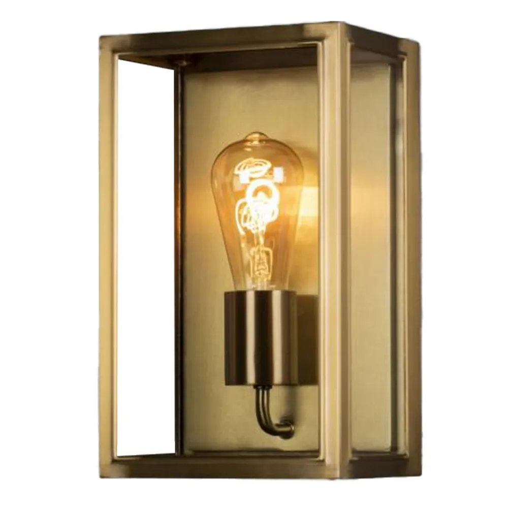 Den udendørs væglampe Carpi overbeviser med et ligetil design. Armaturets ramme er fremstillet af aluminium af høj kvalitet og har en messingfinish. Mellem rammen er der klare glasruder, som giver direkte udsyn til lyskilden. Brugen af glødepærer i pæreform giver armaturet en ekstraordinær karakter.