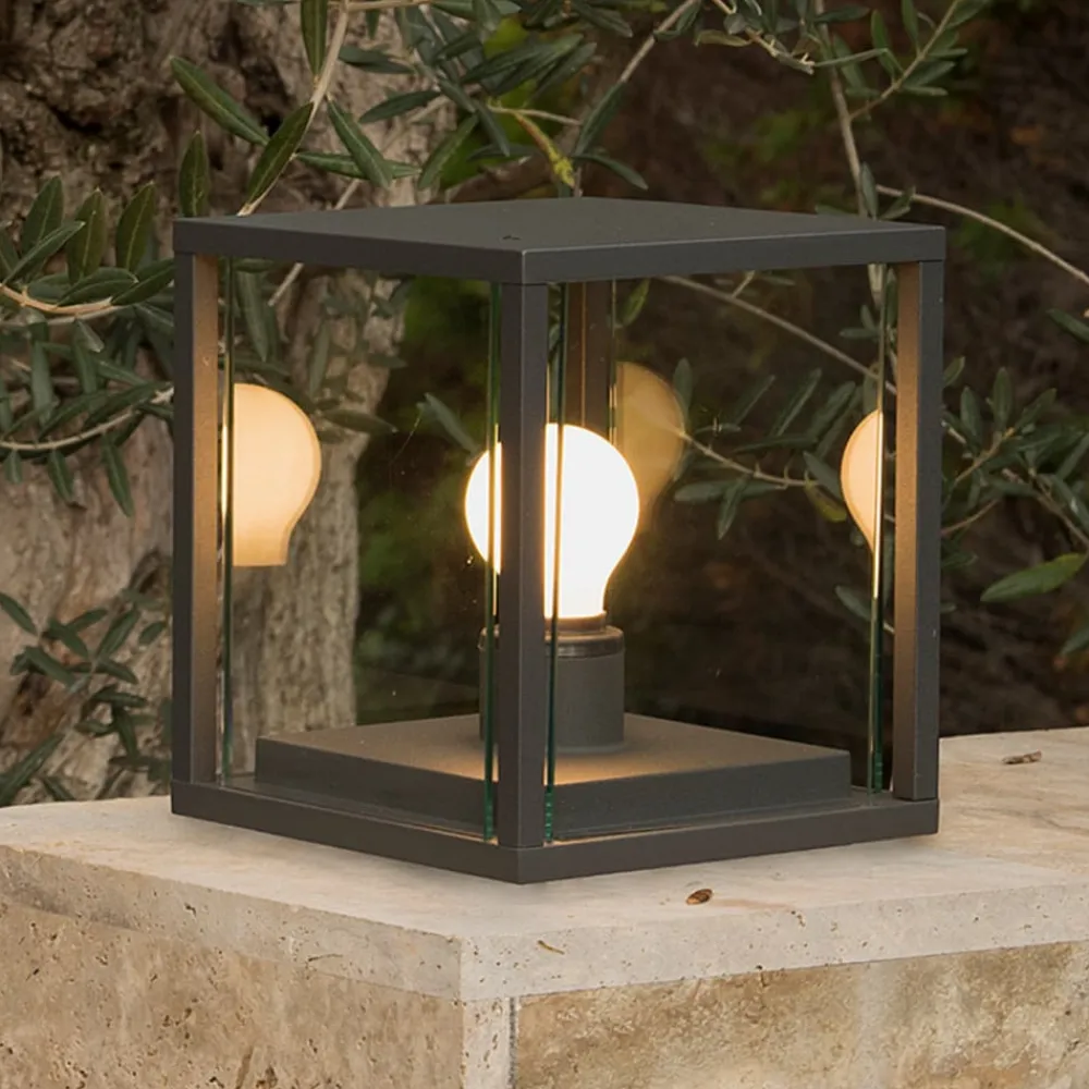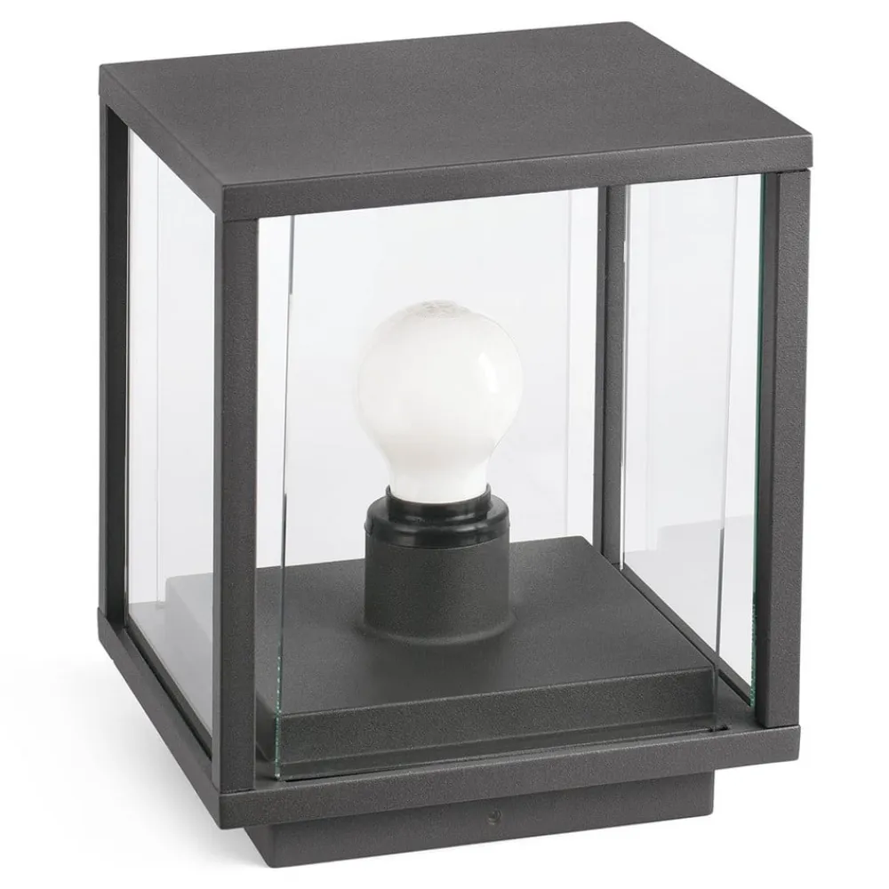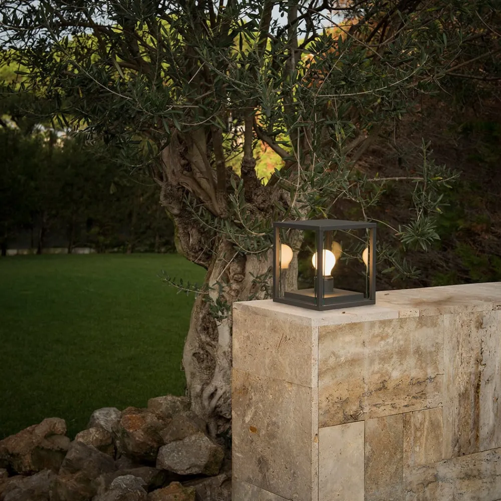 Nala havelampe med et nostalgisk look – enkel og stilfuld Denne vejlampe har et harmonisk, men underspillet design. Kombinationen af vejrbestandigt aluminium i grå og klart glas skaber et ryddeligt og elegant lygte-look med et nostalgisk touch. Takket være den høje IP 54-beskyttelsesklasse er Nala sokkellampen beskyttet mod både støvaflejringer og vandsprøjt. Den kubeformede Nala-havelanterne giver blændfrit lys til aftenhygge på terrassen, oplyser husets indgangsparti eller giver større sikkerhed ved havedammen. Ud over klassiske ideer til havedesign harmonerer denne attraktive sokkellampe med forskellige retrokoncepter, men passer også problemfrit ind i moderne stilløsninger.