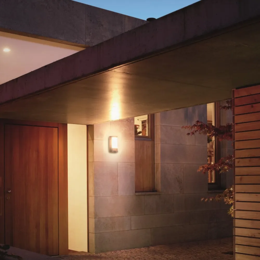 Udendørs væglampe L 12 S i antracit med sensor til alle slags facader Komfortabel, kompakt, moderne – det er ordene, der beskriver udendørslampen L 12 S. Den er udstyret med en integreret bevægelsesdetektor og giver dermed lys, når der er brug for det. Sensoren registrerer bevægelser i et bredt område på 180° og kan justeres. LED-udendørsvægarmaturets hus er lavet af aluminium med en antracitlakeret finish, og dækslet er lavet af opalhvid plast. Sensoren kan drejes 90° vertikalt- Rækkevidde justerbar fra 3 til 10 meter- Lysvarighed justerbar fra 8 sekunder til 35 minutter- Med skumringsrelæ, valgbar responslysstyrke 2 – 2000 lx- Monteringshøjde maks. 3 m