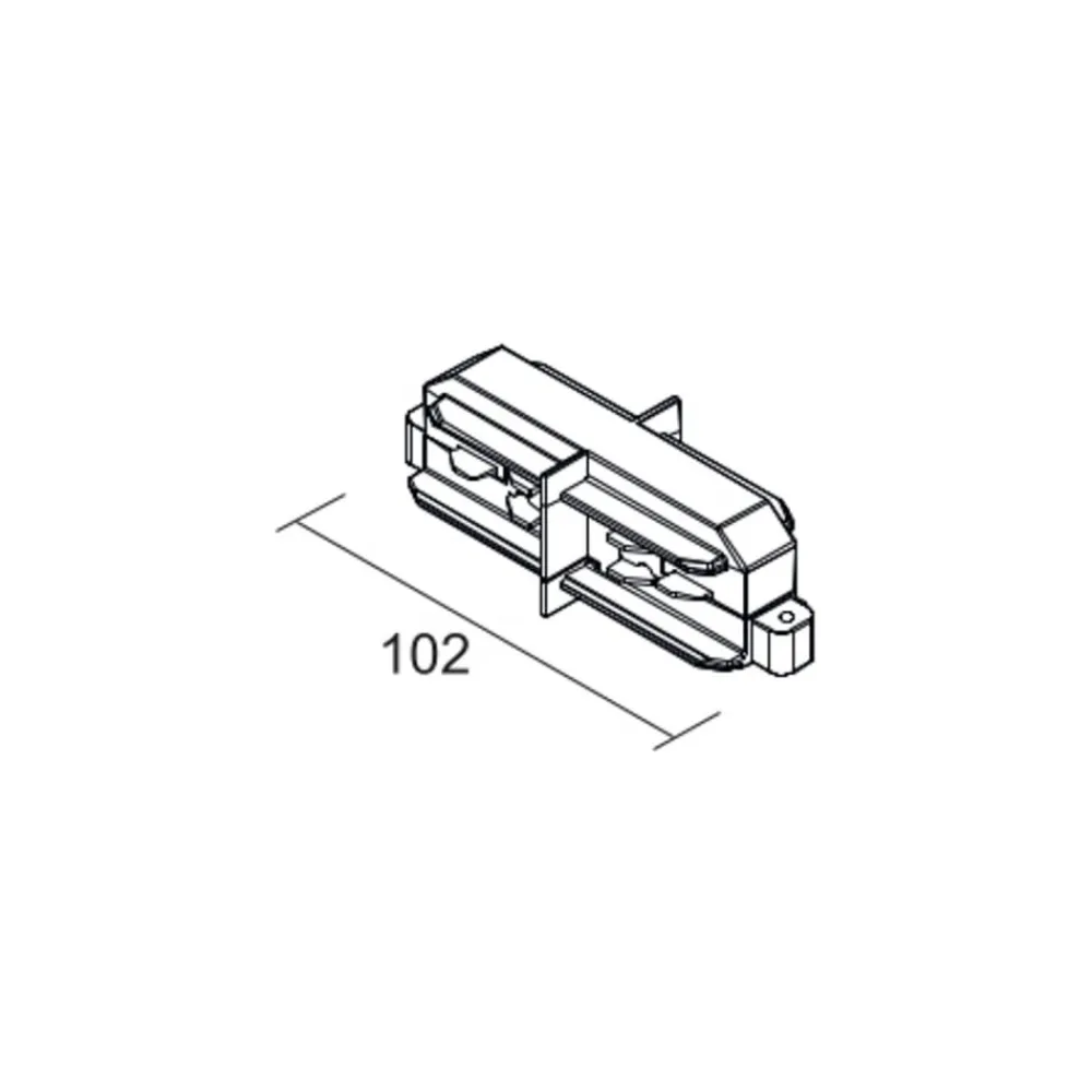 Denne langforlænger med hus af 30 % glasfiberforstærket nylon muliggør lige sammenkobling af to LKM QUADRO DALI 3-fase skinner. Midterstykket adskiller strømkredsene, så denne kobling kan bruges til optisk sammenkobling af separat drevne skinner.