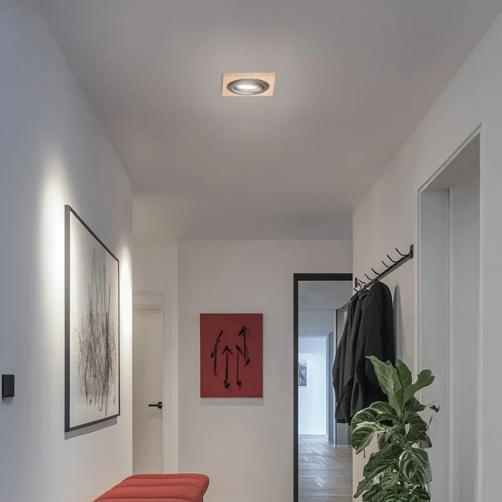 Kantet forsænket loftlampe Tobby i egetræ med drejelig GU10-fatning