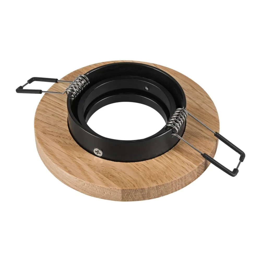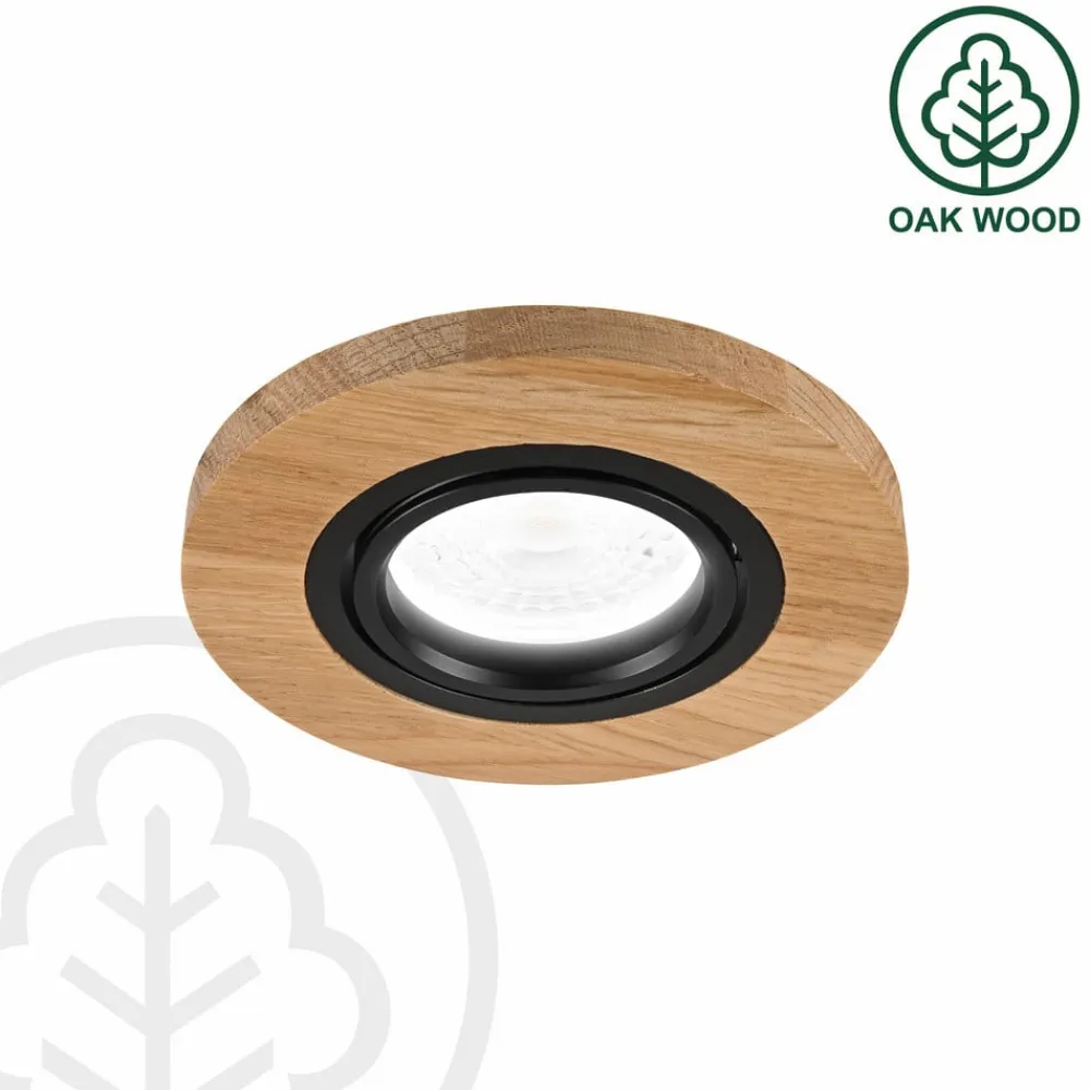 Rund forsænket loftlampe Tobby i egetræ med drejelig GU10-fatning – i sæt med 3