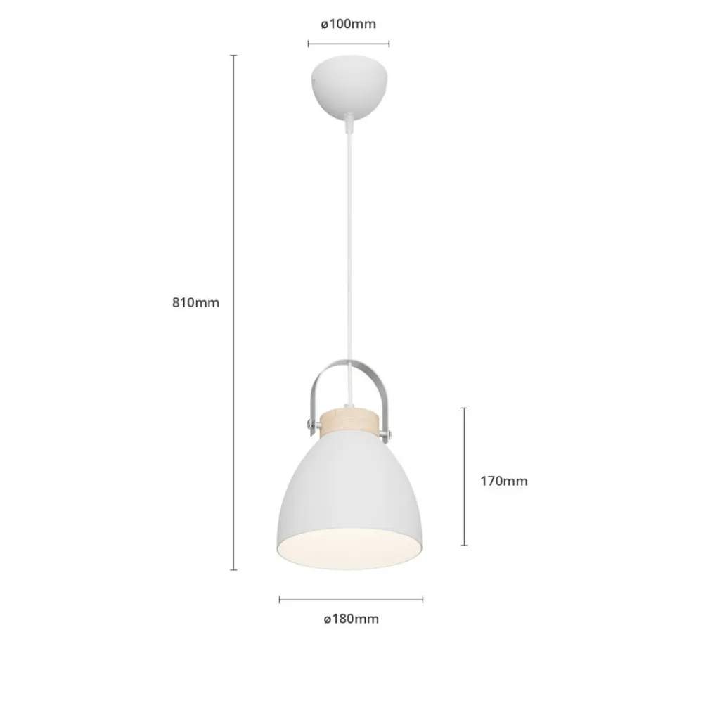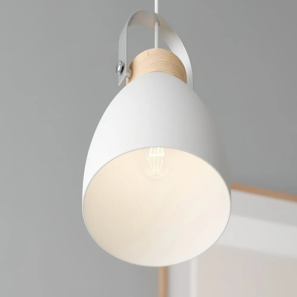 Pendellampen Bergen, med 1 lyskilde, i farven hvid, kombinerer stilfuldt materialerne stål og træ. Denne moderne lampe er ideel til boliger som stuer, køkkener, soveværelser og spisestuer. Dens klare formsprog og harmoniske farvevalg i hvid og lyst træ giver ethvert rum en moderne elegance.