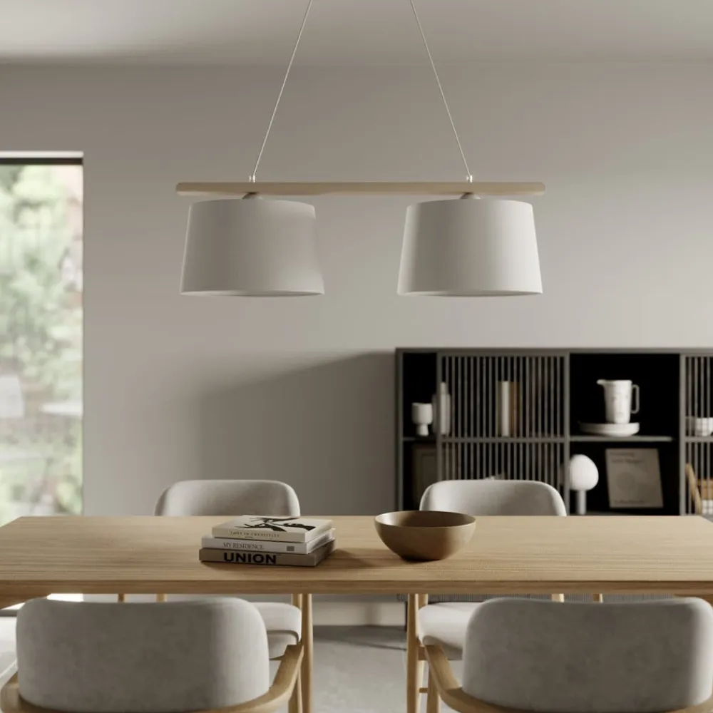 Luminex Pendellamper>Hængelampe Noak, hvid/naturtræ, 4 lyskilder lang