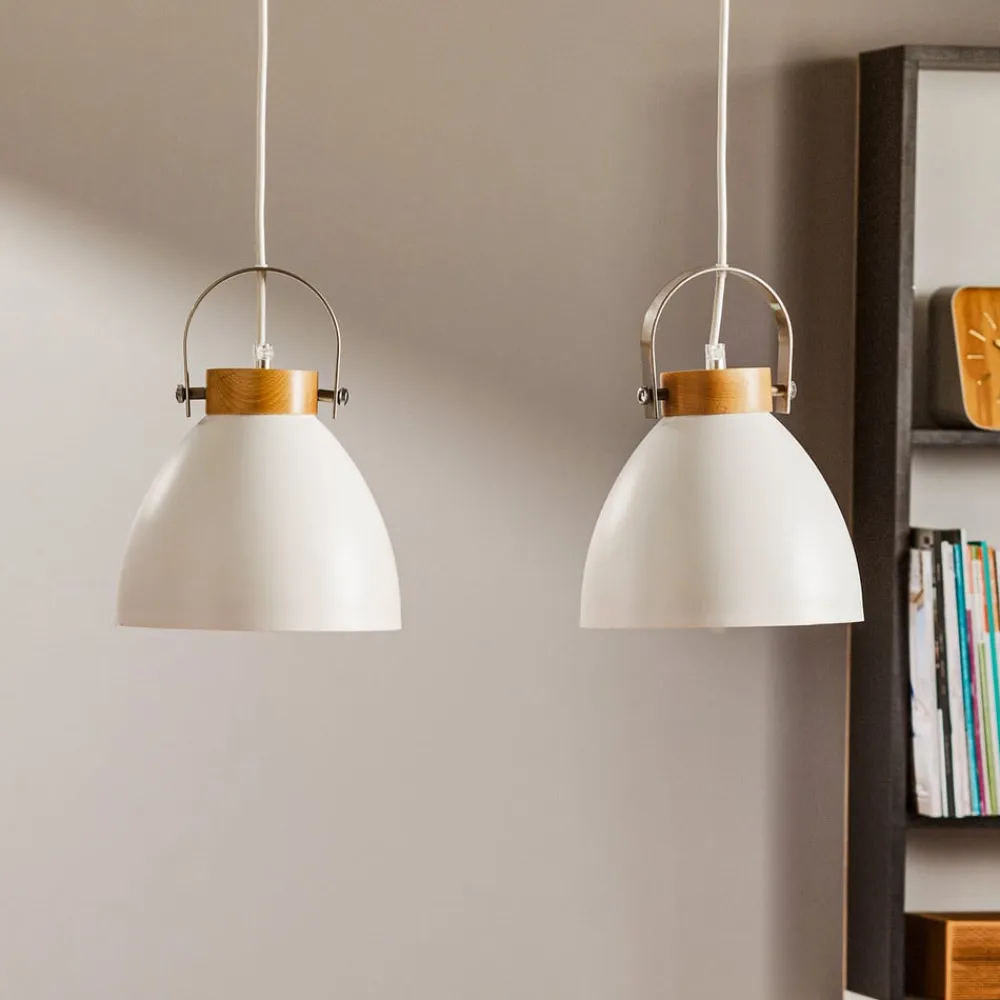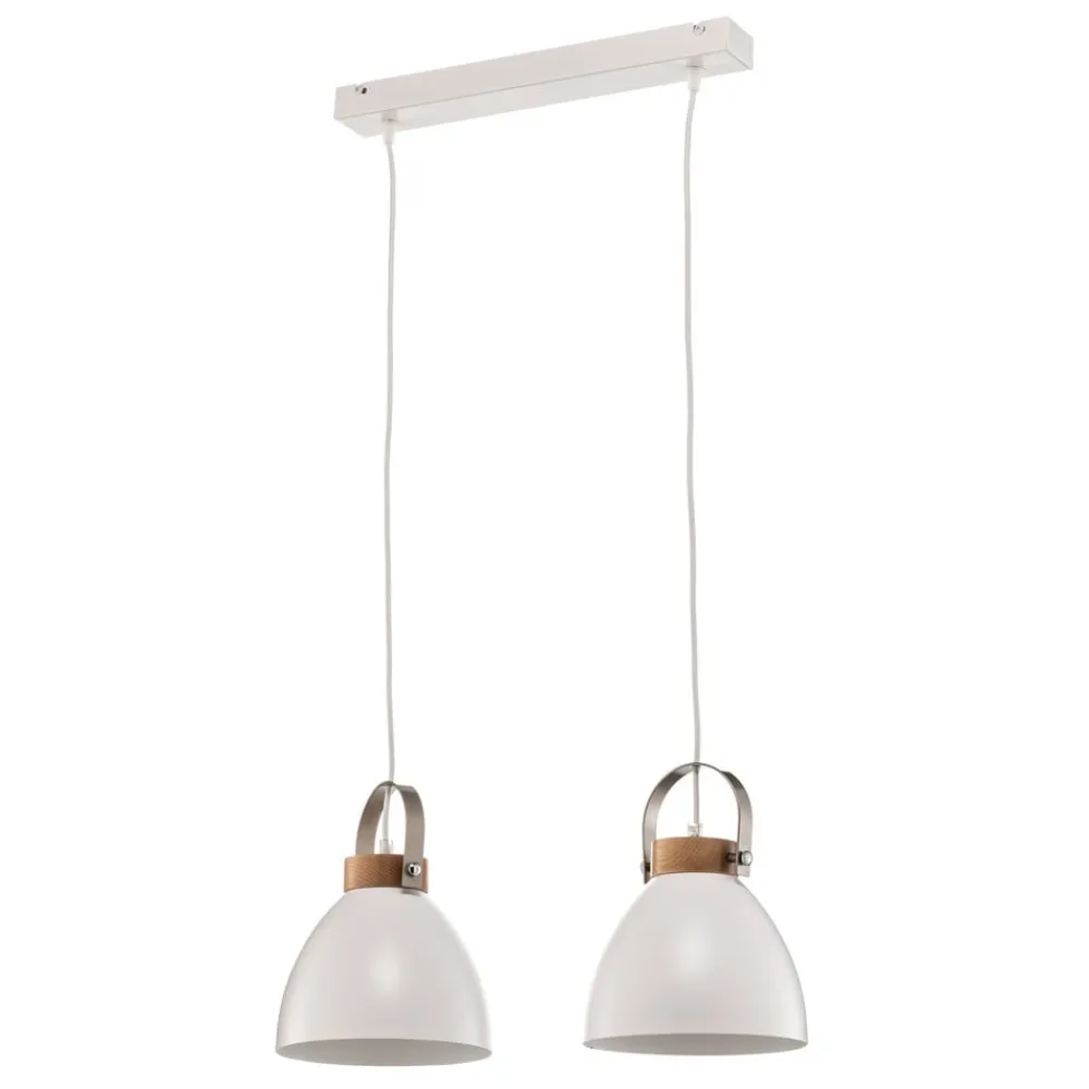 Pendellampen Bergen med 2 lyskilder er en stilfuld belysningsløsning til moderne boliger. Den er fremstillet af en harmonisk kombination af stål og lyst træ og passer perfekt ind i forskellige indretningsstilarter. Lampen er holdt i en elegant hvid farve, der suppleres af de naturlige træelementer og skaber en varm og indbydende atmosfære.