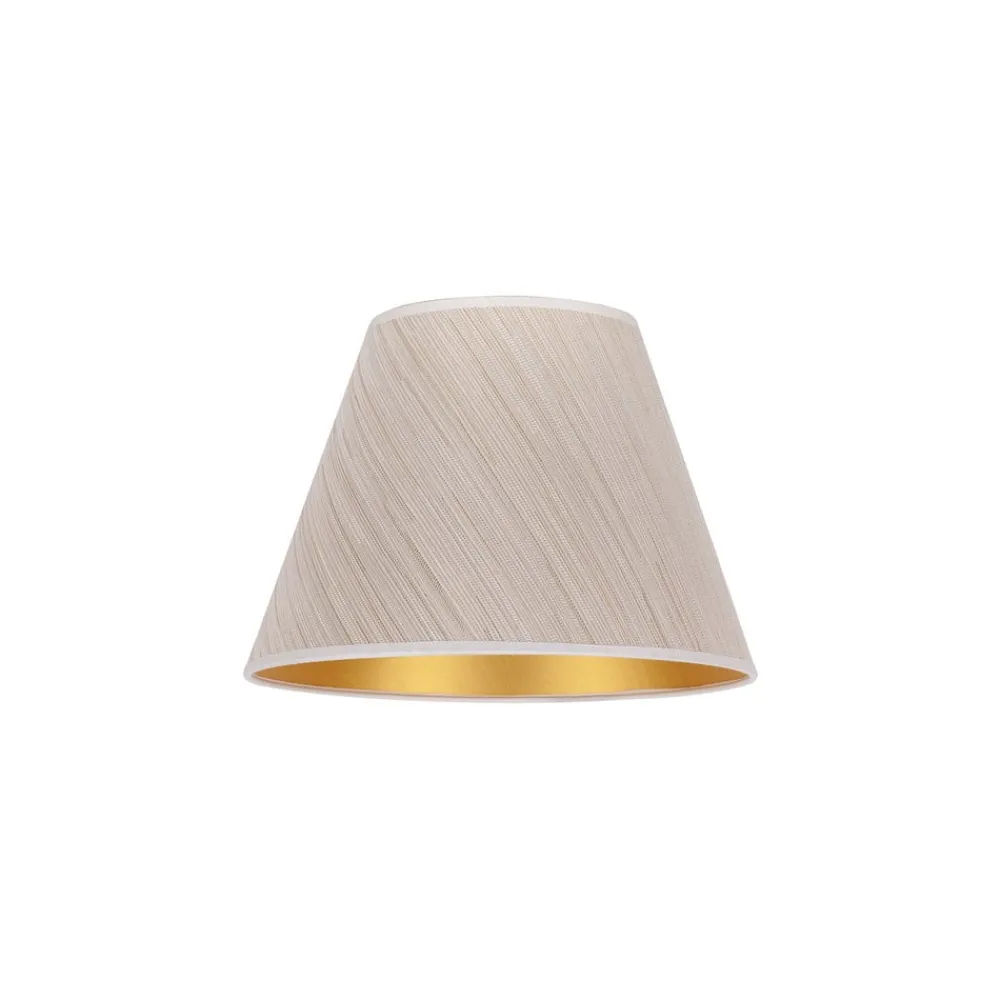 Sofia lampeskærm imponerer med sin udsøgte kombination af hvidt og guldstribet tekstil, der giver ethvert rum et elegant præg. Den omhyggelige forarbejdning og det højkvalitative materiale understreger produktets kvalitet og holdbarhed. Med sin tidløse farveindretning passer lampeskærmen perfekt ind i forskellige indretningsstilarter og sætter stilfulde accenter.