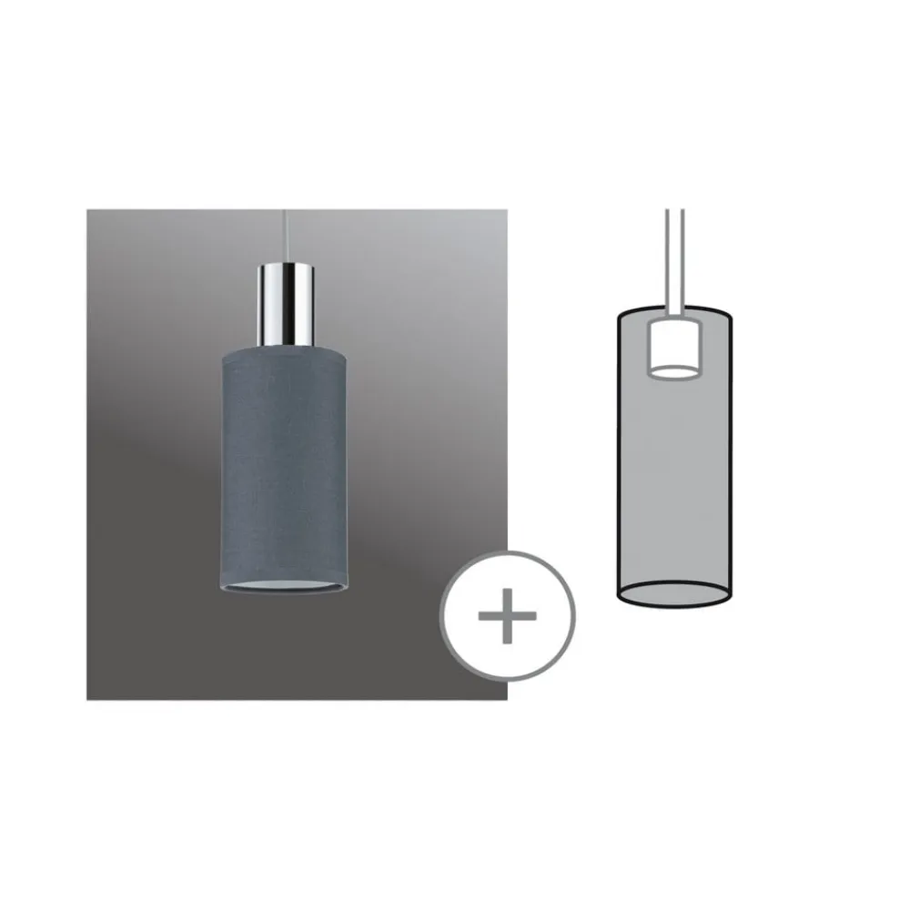 Paulmann lampeskærm URail Valerio 2Easy Denne lampeskærm i stof kan monteres med Basic-pendler eller Basic-spots til URail skinnesystemet – kun egnet til brug med Basic-pendelophæng og Basic-spots fra URail skinnesystemet fra Paulmann (fås separat)