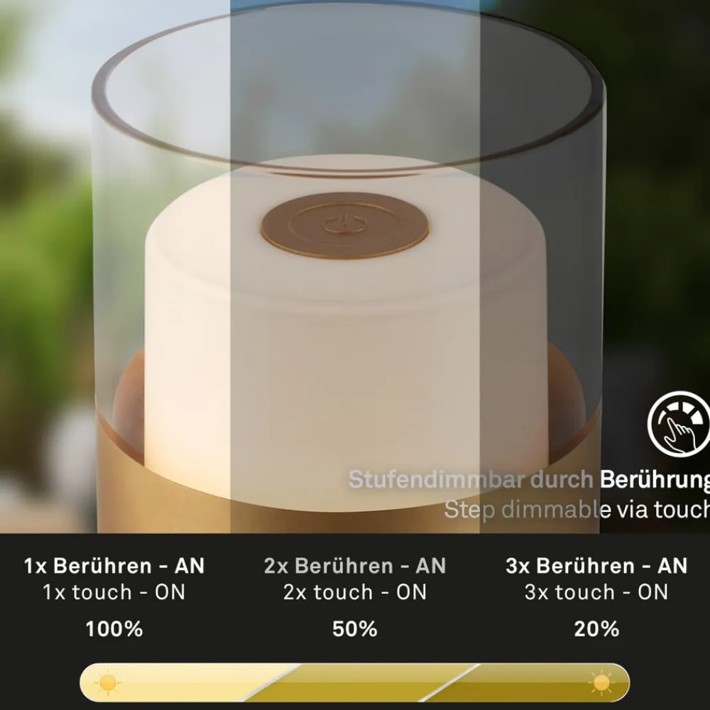 LED-batteri-bordlampe 7483 IP44 lysdæmper, guld
