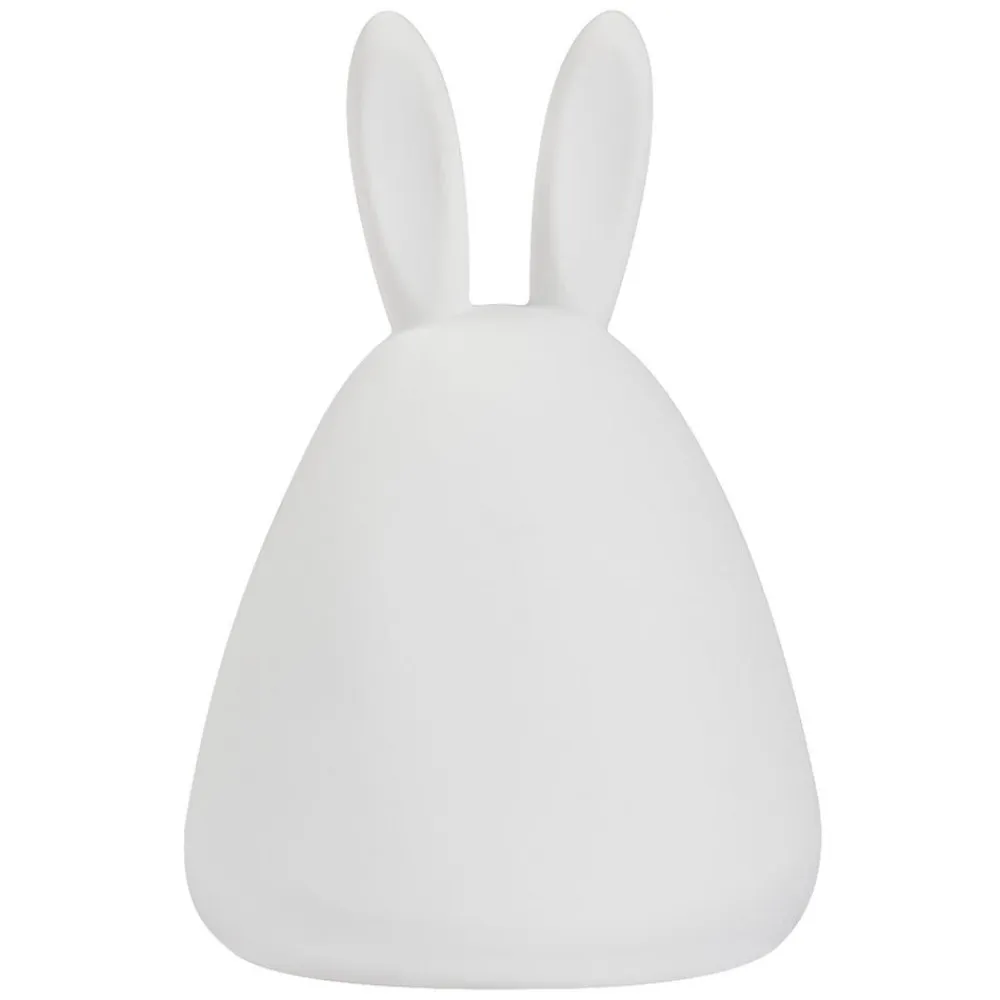 RGBW-natlampe NIGHTLUX RABBIT med berøringsdæmperfunktion, batteridrevet, genopladelig. Produktegenskaber: Genopladeligt batteri via USB-kabel. RGB-farvestyring. Natlampe med kaninmotiv. Anvendelsesområder: Børneværelse. Kun til indendørs belysning. Inkl. USB-opladerkabel.