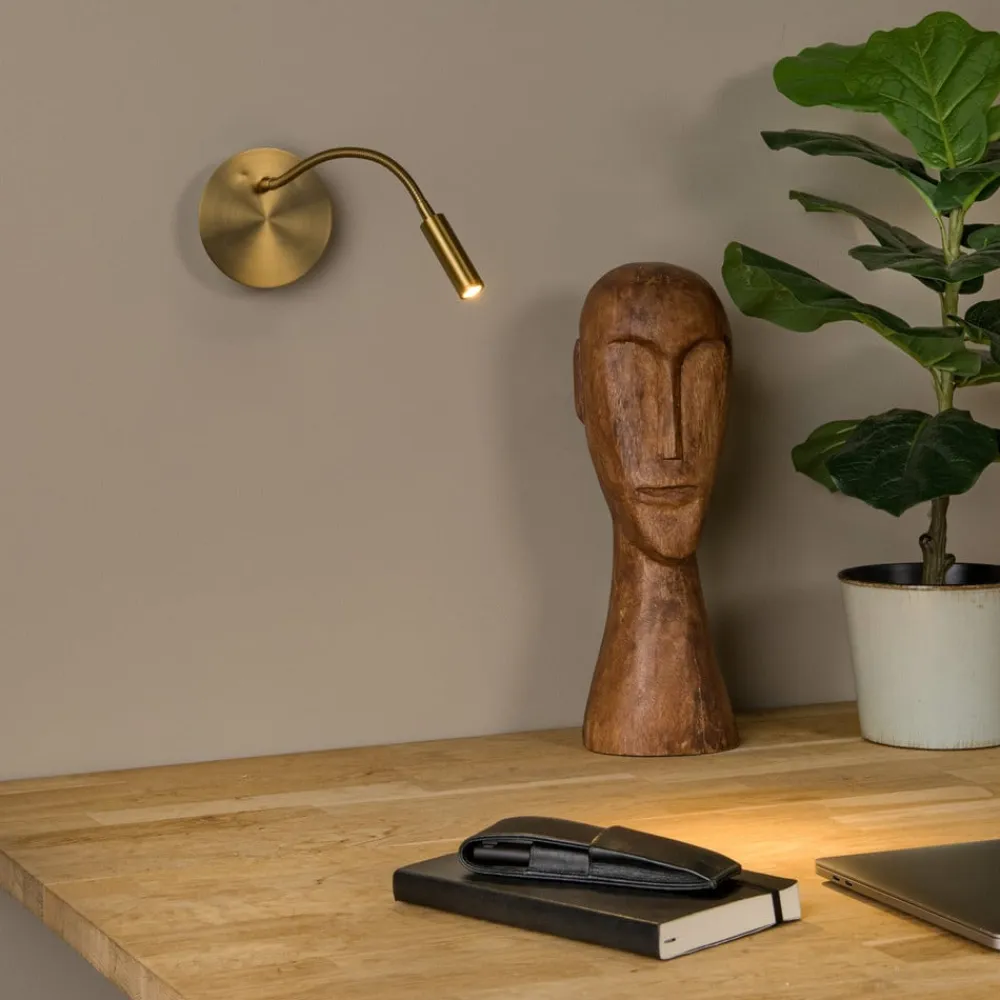 LED-batterivægspot Jolijn, guldmat, fleksibel arm, Ø 11 cm, magnet