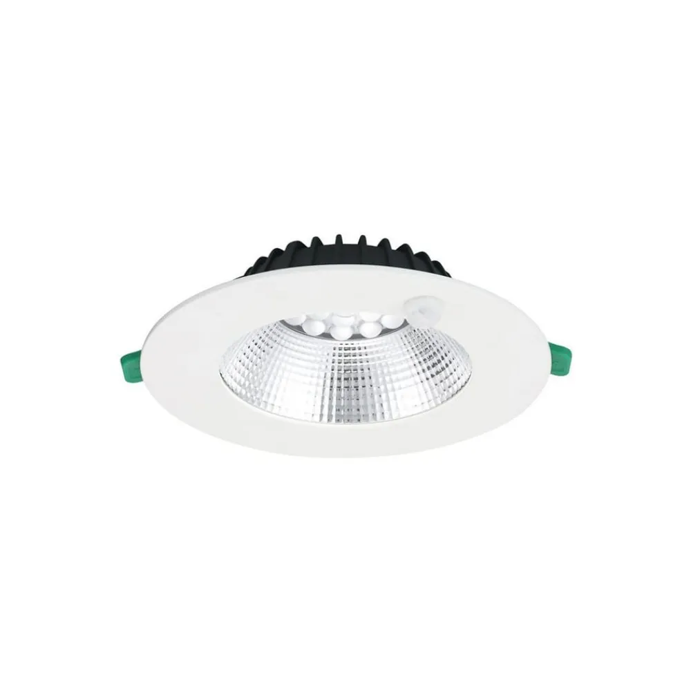 LED indbygget loftlampe Insaver Slim med PIR-sensor Insaver er en LED-downlight til indbygget loft (IP44 fra forsiden) med integreret PIR-sensor med tids- (op til 8 minutter) og dagslys-lux-indstillinger – loop-in loop-out-forbindelse til hurtig installation – dæmpbar LED-driver – opfylder TP(a)-krav