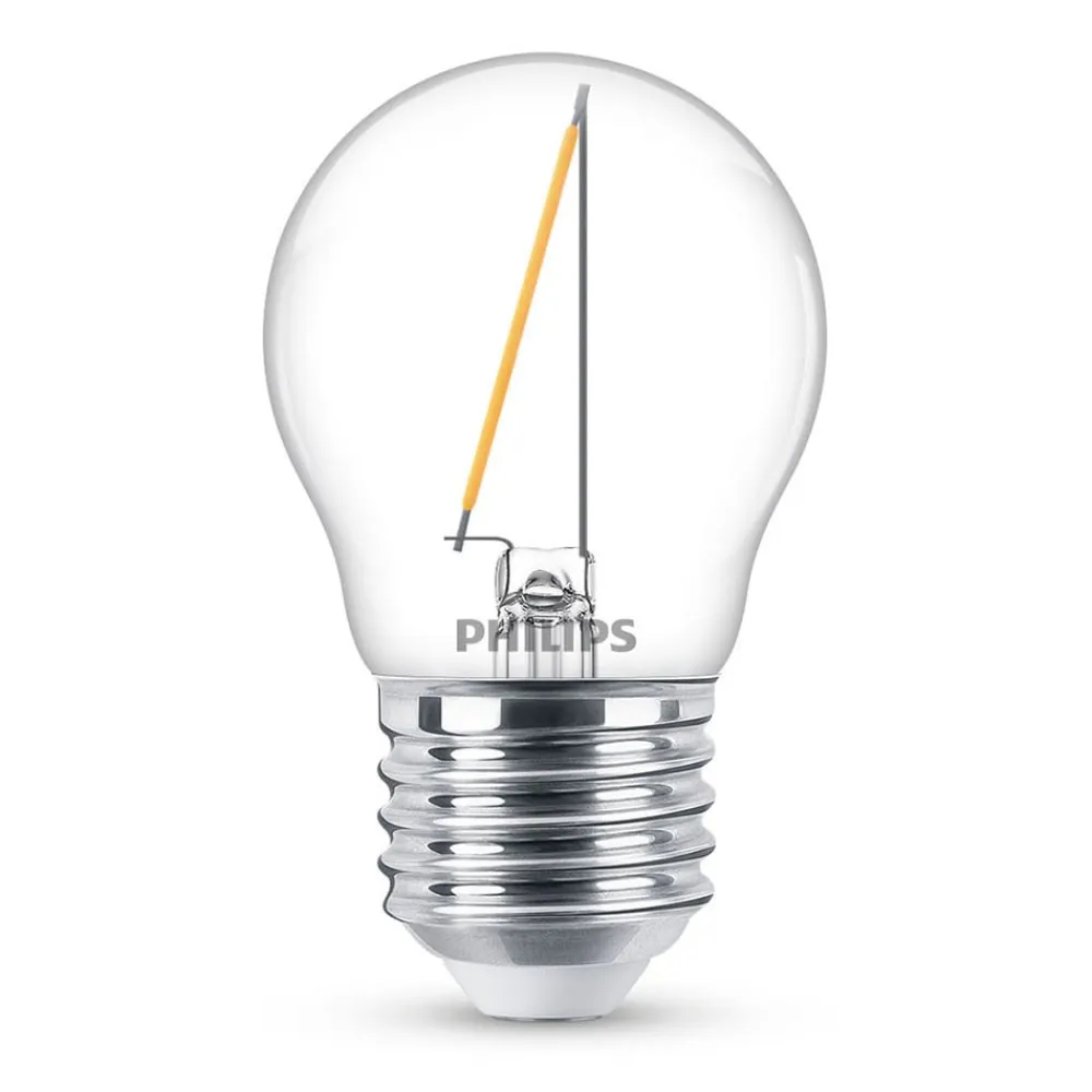 LED-dråbelampe E27 1,4W med varm hvid lysfarve og klart glas