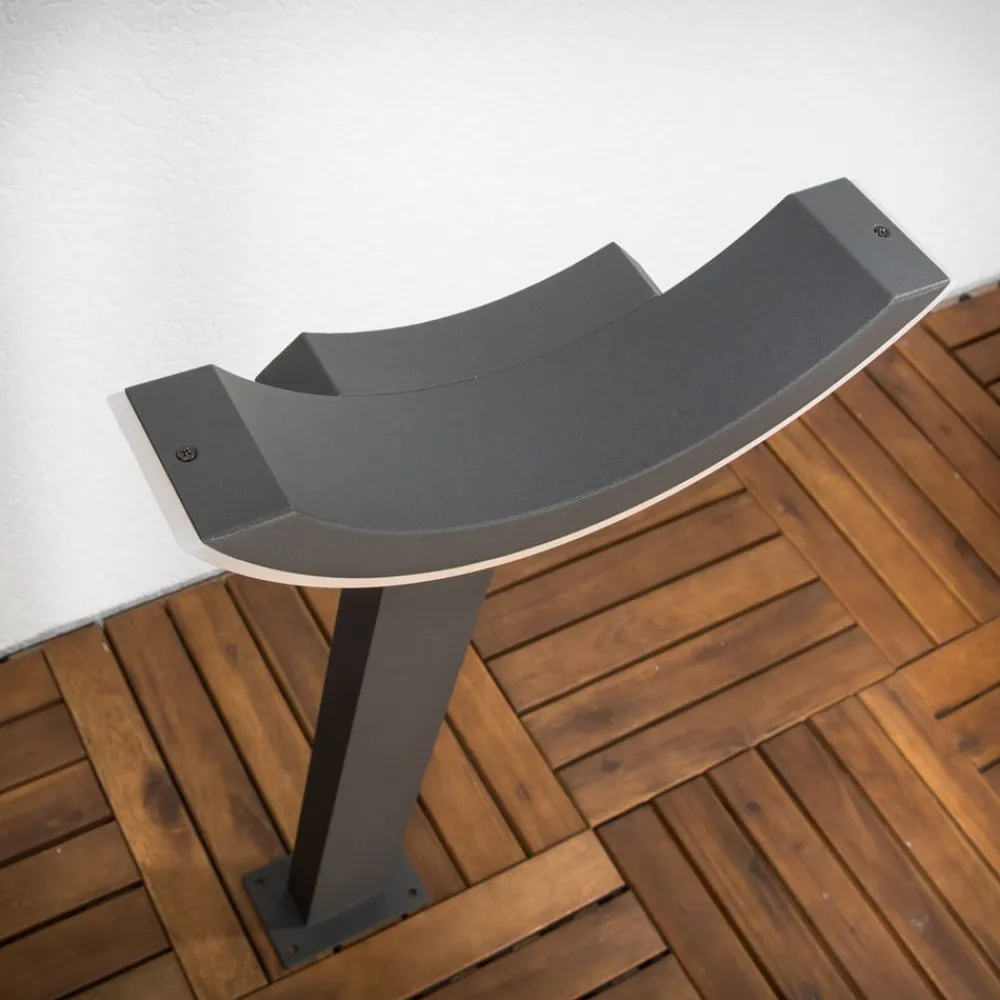 Nedadrettet lys med LED-gadelampen Half Det er en halvcirkelformet krop af aluminium, som sidder på den grafitgråtonede ramme og fuldender designet af LED-gadelampen på en tiltalende måde. Det passer særdeles godt ind i moderne omgivelser, som f.eks. nye bygninger, og udsender hovedsageligt indirekte lys, da SMD-lysdioderne hovedsageligt er rettet nedad og kun lidt til siden på grund af den buede form. LED’erne er et mærkevareprodukt fra Epistar, som er meget økonomisk med hensyn til energiforbrug.