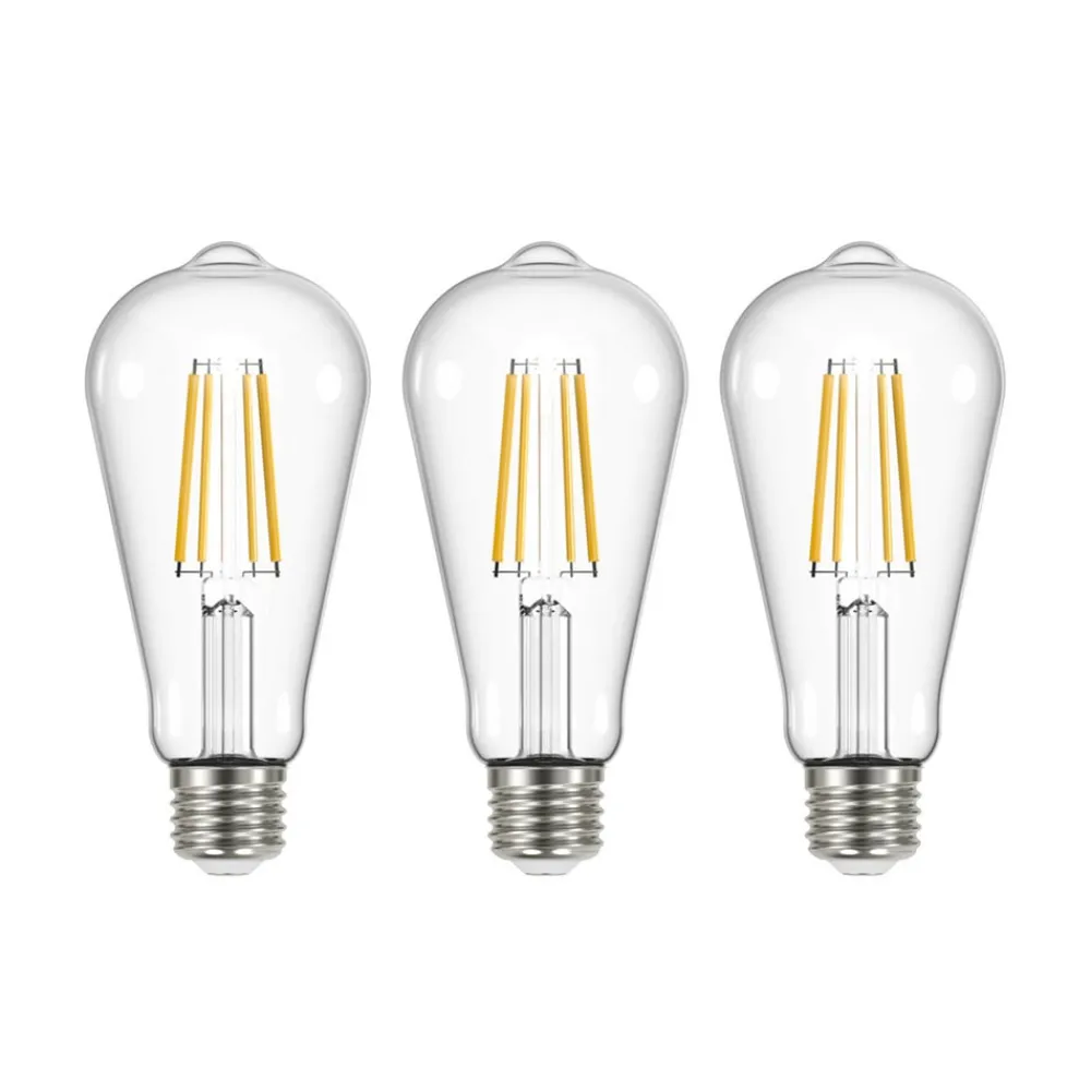 LED rustik glødelampe E27 3,8 W 3.000 K, energiklasse A – i praktisk sæt med 3 Denne lyskilde har et rustikt look og er derfor en særlig dekorativ tilføjelse til åbne lamper af alle slags, herunder dem, der er designet i den populære vintage-stil. Den klare glaspære ser altid meget attraktiv og stilfuld ud. Det er også værd at understrege, at lampen har en EEK A-klassificering, hvilket betyder, at den kombinerer lavt forbrug med fremragende lysudbytte. Tekniske data: – varm hvid (3.000 Kelvin) – energieffektivitetsklasse A – leveres i et sæt med 3 stk