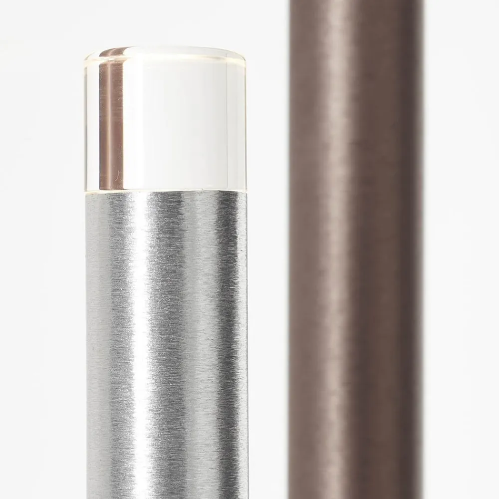Meget moderne og med et stilfuldt design fremstår LED-gulvlampen Cembalo. Med sit varmhvide lys og de naturlige farver i finishen skaber den en behagelig og varm atmosfære. Der er placeret fem metalsøjler på en rund stander, og de krones af en akryldiffusor, der indeholder en LED-pære. På grund af søjlernes forskellige højder skabes der en enestående oplysning, der giver harmoniske accentueringer i soveværelser og stuer.