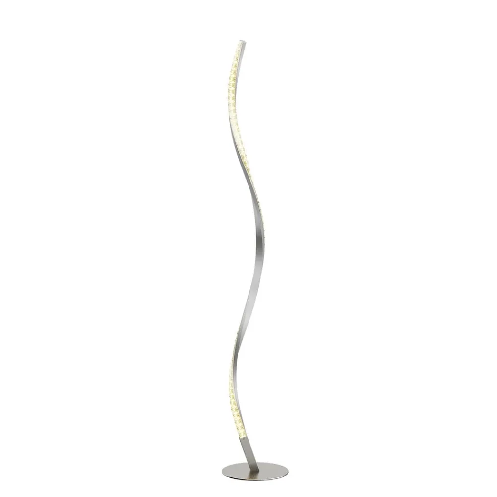 Criostal LED-gulvlampe med fjernbetjening og RGB-skift Criostal LED-gulvlampens metal er lavet af børstet aluminium, og “krystallerne” er lavet af plast. Det forringer dog ikke lysets skønhed. Criostal LED-gulvlampen har også mange ekstra funktioner. Med den medfølgende fjernbetjening er lyset ikke kun trinløst dæmpbart, men der kan også indstilles forskellige farveskift. Der er også fire forudindstillede farvetilstande kaldet Flash, Strobe, Fade og Smooth. En meget speciel lampe, som vil blive et smykke i ethvert moderne hjem.