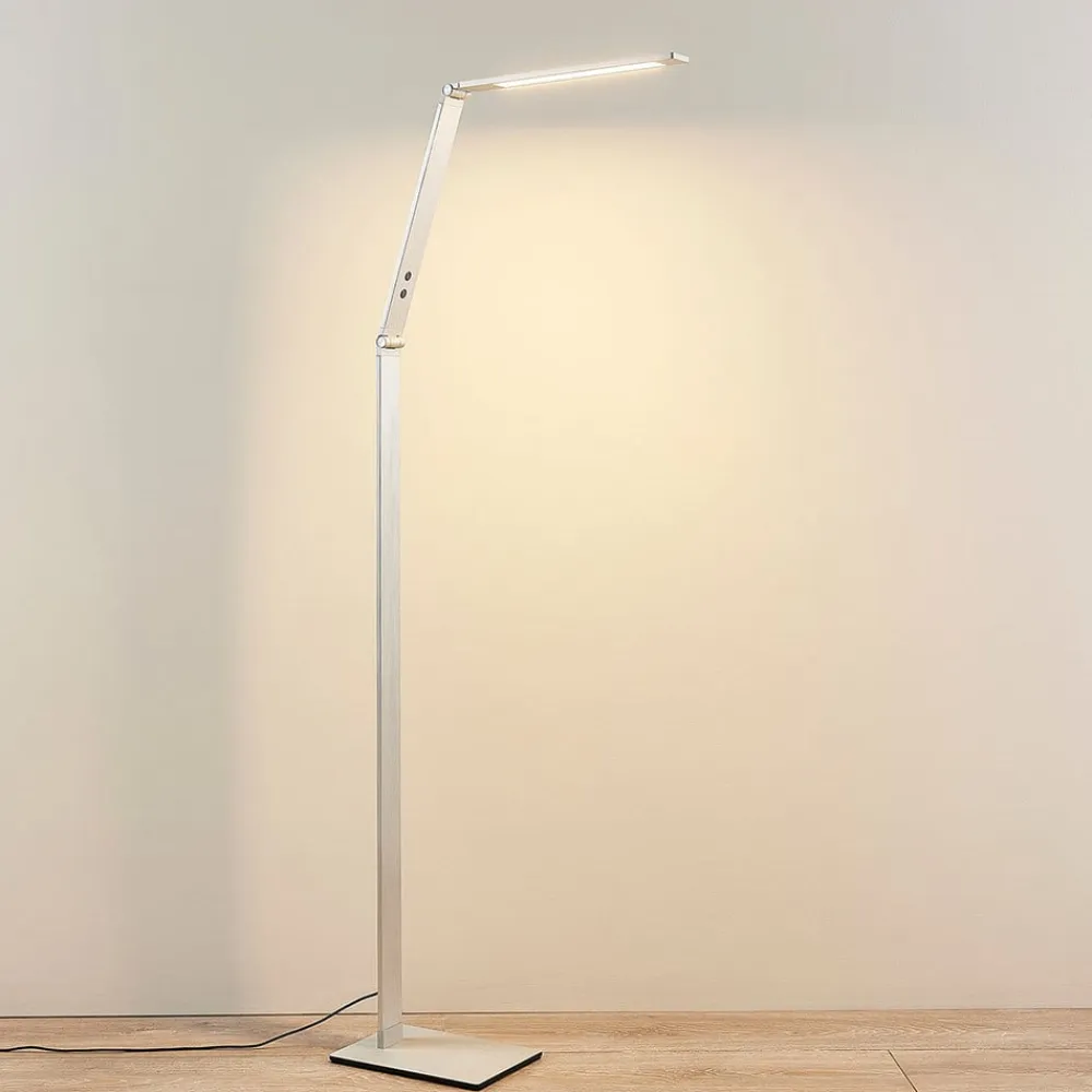 Puristisk LED-læselampe Nicano med justerbare elementer og skiftende lysfarve Nicano er en LED-gulvlampe med et umiskendeligt moderne, minimalistisk look, der passer godt ind i den puristiske boligstil. Den er ideel som læselampe, når den placeres bag eller ved siden af en sofa eller andre siddepladser. Her er det en fordel, at lysets retning kan bestemmes individuelt ved hjælp af to led, og det er også muligt at ændre både lysfarve og lysstyrke. Dette er muligt i fire trin ved hjælp af to berøringskontakter.