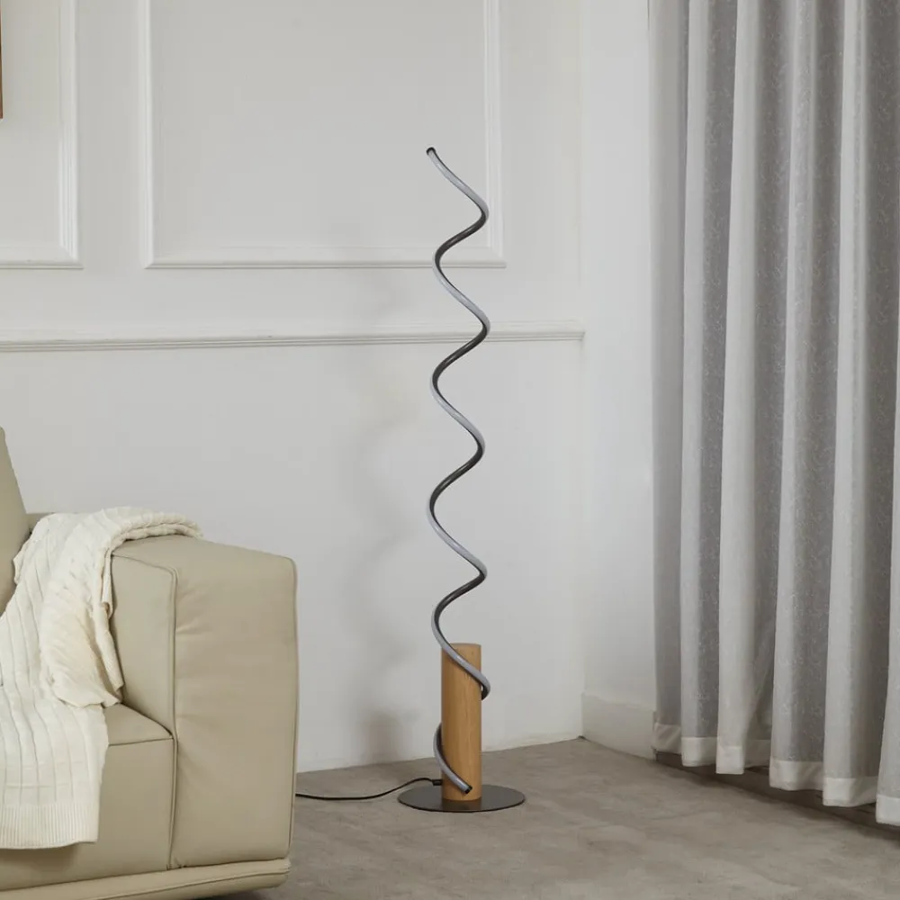 Lindby Spiraali LED-gulvlampe af aluminium og træ i markant landhusstil Oplev en berigelse af din bolig med Spiraali LED-gulvlampen. Kombinationen af en tiltalende grå skærm og træets naturlige varme passer harmonisk ind i stemningen i din stue eller spisestue. Den integrerede LED-lyskilde giver ikke kun en behagelig belysning, men er også kendetegnet ved sin energieffektivitet. Spiraali-gulvlampens rustikke elegance skaber en atmosfære, der indbyder til både afslapning og socialt samvær. Med sin tidløse landhusstil er denne lampe et blikfang i ethvert rum.