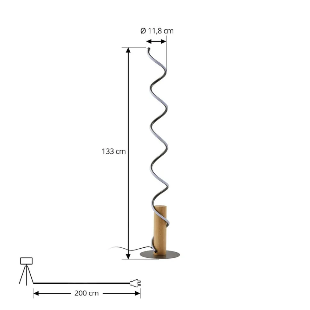 Lindby LED-gulvlampe Spiraali, grå, træ, højde 133 cm