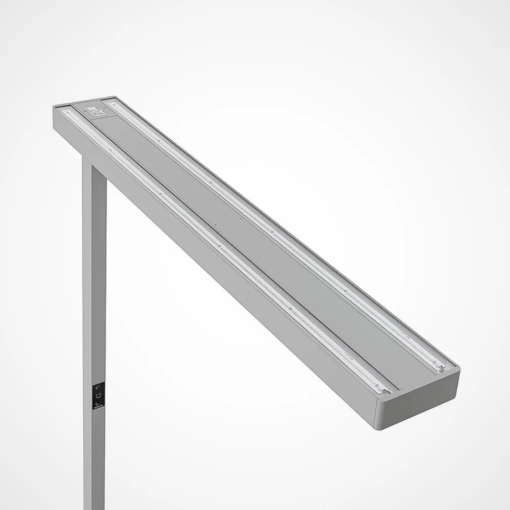 Dæmpbar Susi LED-gulvlampe til kontor med integreret bevægelsessensor og dagslyssensor Susi LED-gulvlampen imponerer med sin avancerede teknologi og praktiske funktioner. En touch-dæmper gør det muligt at justere lysstyrken, så den passer til dine behov. En integreret bevægelsessensor registrerer bevægelse i en vinkel på 85° og slukker lyset automatisk efter ca. 30 minutter, hvis den ikke registrerer yderligere bevægelse. Armaturet er også udstyret med en dagslyssensor, der kan justeres manuelt og tilpasser lysstyrken til det omgivende lys for at sikre, at lysstyrken forbliver så konstant som muligt. Susis universalhvide lys er ideelt til arbejde på kontoret, da det fremmer koncentreret arbejde. Da lyset udsendes både direkte og indirekte, kan denne gulvlampe oplyse rummet godt med sine kraftige LED’er. Tekniske data: – flimmerfrit lys – universalhvid farvetemperatur (4.000 K) – direkte og indirekte lys – inkl. bevægelsessensor – integreret dagslyssensor – dæmpbar – UGR < 11 – IK04 slagfasthedsklasse – SDCM 3 – U-formet fod – ideel til dobbeltarbejdspladser
