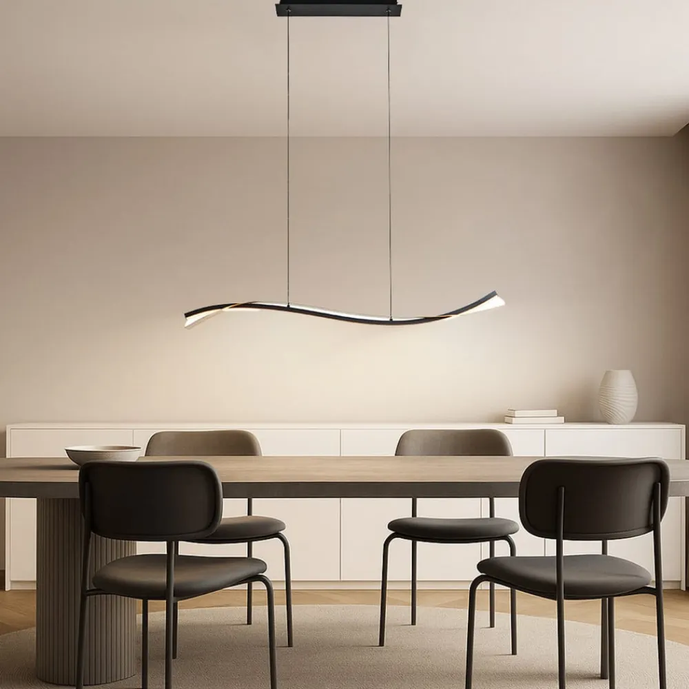 Desuden kan lysstyrken reguleres i tre trin via den traditionelle vægafbryder. Således kan pendellampen både bruges til hyggelige aftener og til produktive arbejdsfaser. Med et farvegengivelsesindeks på 80 Ra sikrer den en naturlig og behagelig lyskvalitet. Denne lampe forener design og funktionalitet på højeste niveau og er med sit usædvanlige udseende et highlight i ethvert rum.