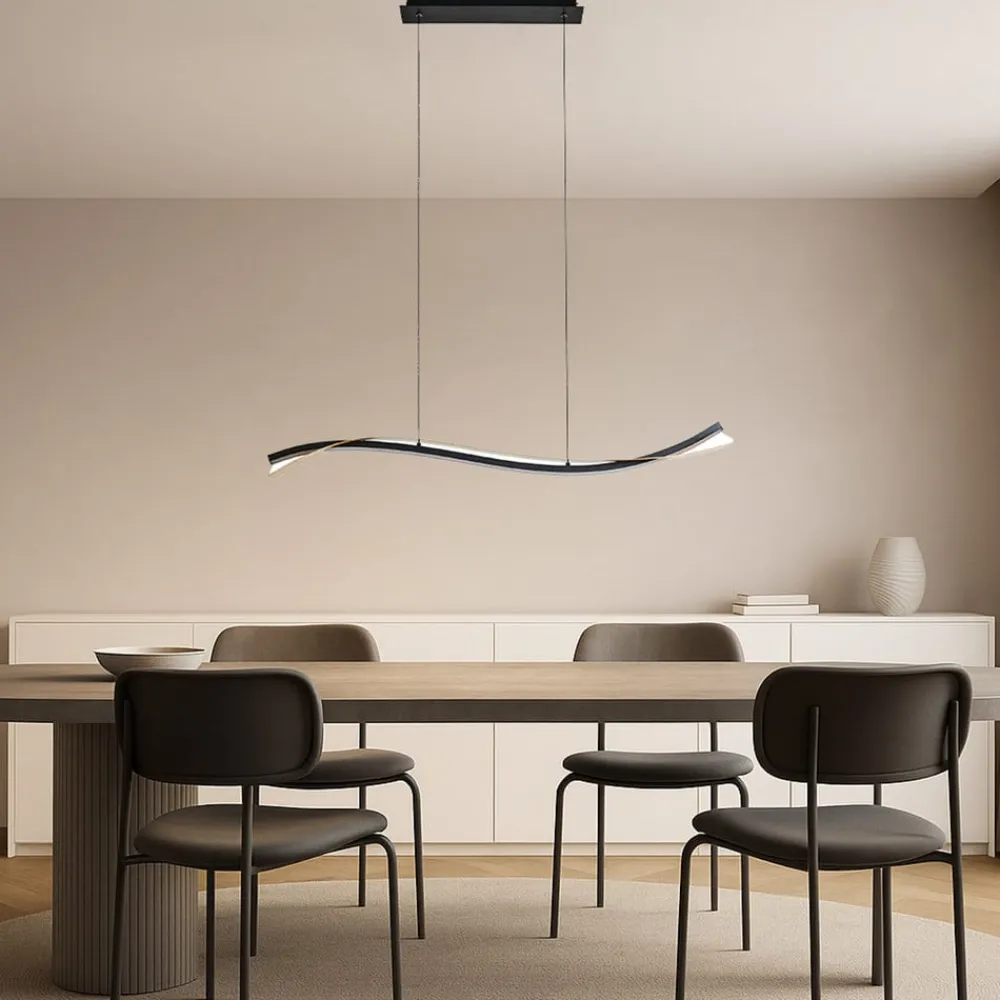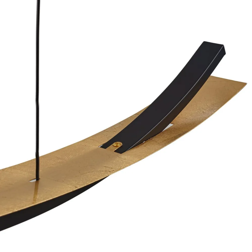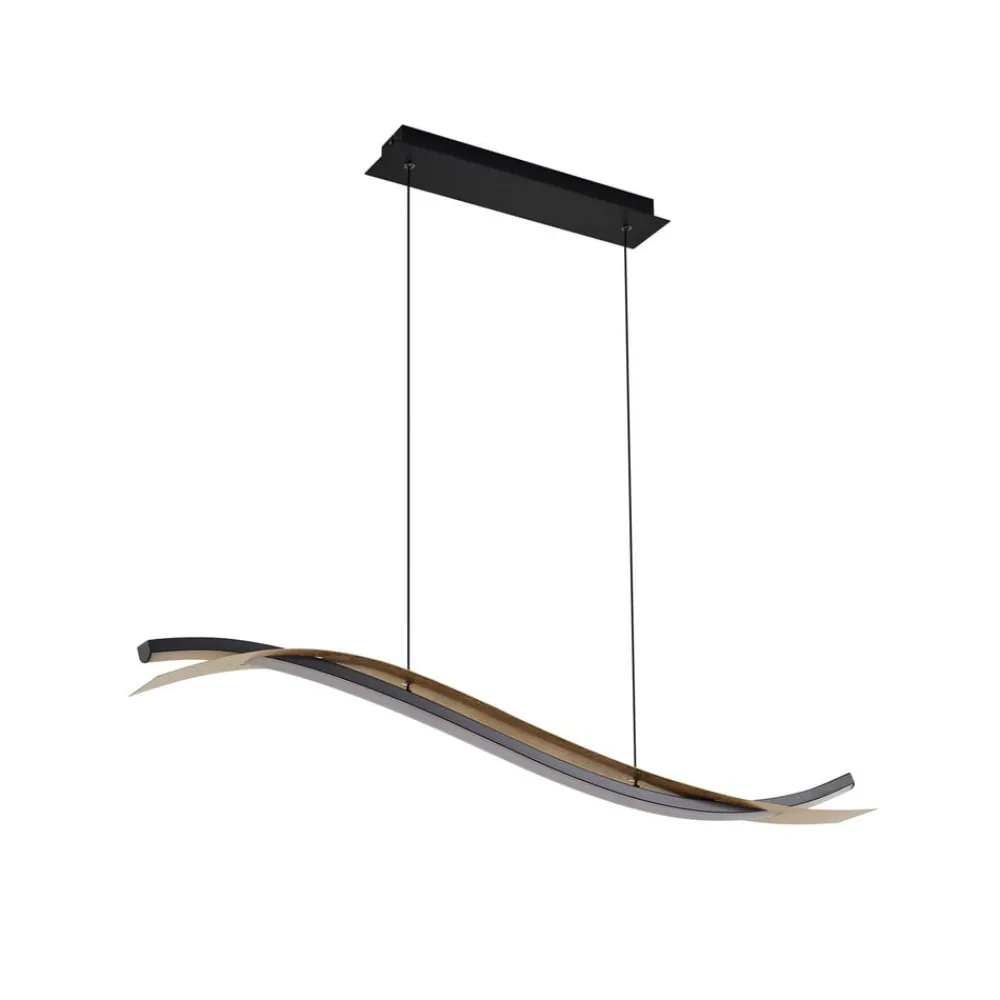 LED-hængelampe Alevia imponerer med sit elegante design i en harmonisk kombination af sort og guld. Den er fremstillet af højkvalitets jern, PVC og metal og passer perfekt ind i moderne spisestuer. Den integrerede LED-lyskilde sikrer en effektiv og langtidsholdbar belysning.