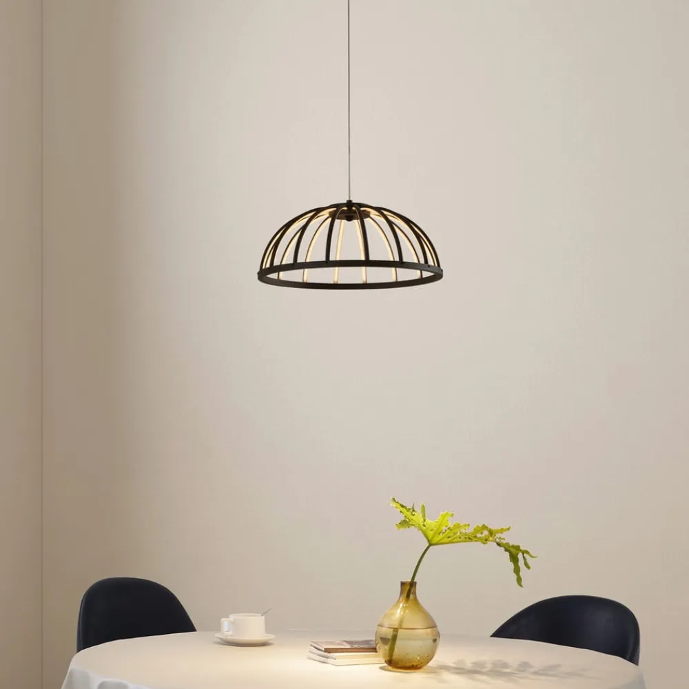 Belysningskoncept med stil: Attea LED-hængelampe i sort Attea LED-hængelampen kombinerer elegant design med funktionel belysning og skaber en indbydende atmosfære i ethvert rum. Den matsorte overflade på aluminiumshuset passer perfekt ind i moderne indretningsstile og bliver et blikfang i stuen, køkkenet eller spisestuen. Med den integrerede LED-lyskilde nyder brugerne godt af energieffektiv belysning, der ikke kun lyser rummet op, men også øger velværet. Uanset om det er til afslappende timer eller som støtte til koncentreret arbejde – denne hængelampe tilpasser sig en lang række krav. 3-trins dæmpbar + off: En vægkontakt gør det muligt at tænde og slukke lyset som sædvanligt. Takket være 3-trins-dæmpningsteknologien med integreret slukfunktion kan den også dæmmes til tre forskellige lysstyrkeniveauer ved at trykke på kontakten flere gange: 100 %, 50 % og 10 %.
