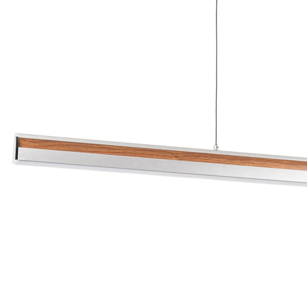 LED-hængelampe Lutana forener moderne design med funktionel belysning. Den præsenterer sig i en stilfuld kombination af lys, naturligt træfarve og en delikat rosaguld. Den integrerede LED-lyskilde skaber et varmhvidt lys, der skaber en behagelig atmosfære og er dæmpbar trinvist via vægkontakten. Lyset stråler opad og nedad over hele lampeskærmens længde. Med sit klare formsprog passer Lutana perfekt ind i moderne boligkoncepter og bliver et stilfuldt blikfang over enhver spisebord.