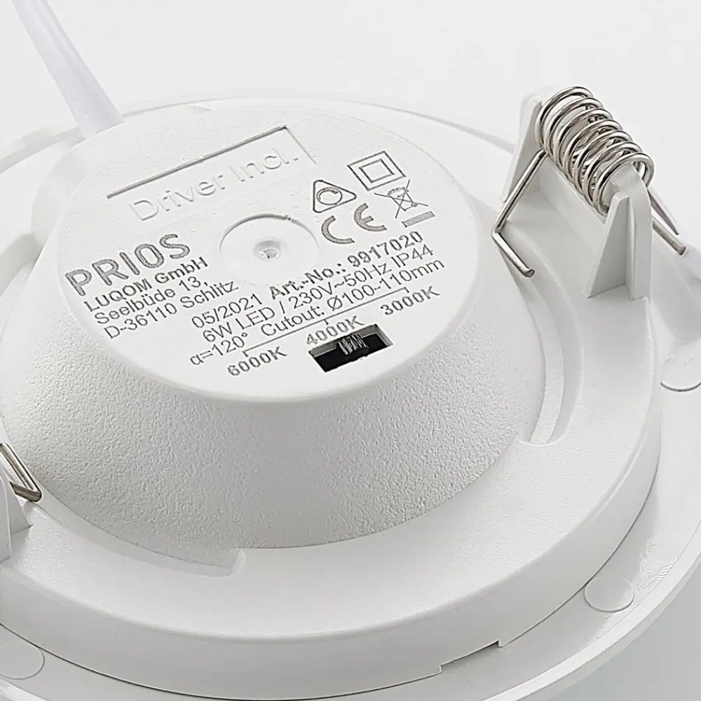 Prios LED-indbygningslampe Cadance, hvid, 12 cm, CCT, IP44