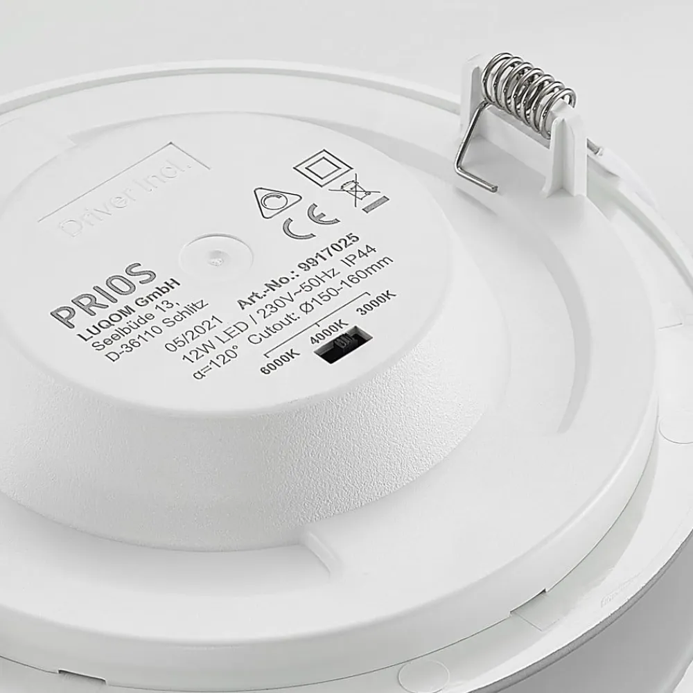 Prios LED-indbygningslampe Cadance, sølv, 17 cm, CCT, IP44