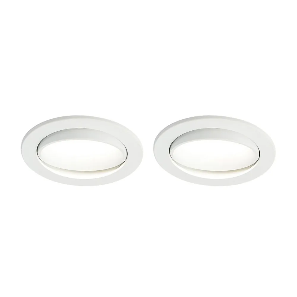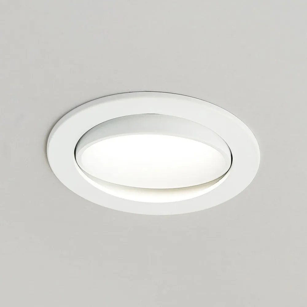 Katerin er en svingbar, dæmpbar LED-indbygningsspot med hvid ramme og rund form, hvor lysfarven kan indstilles