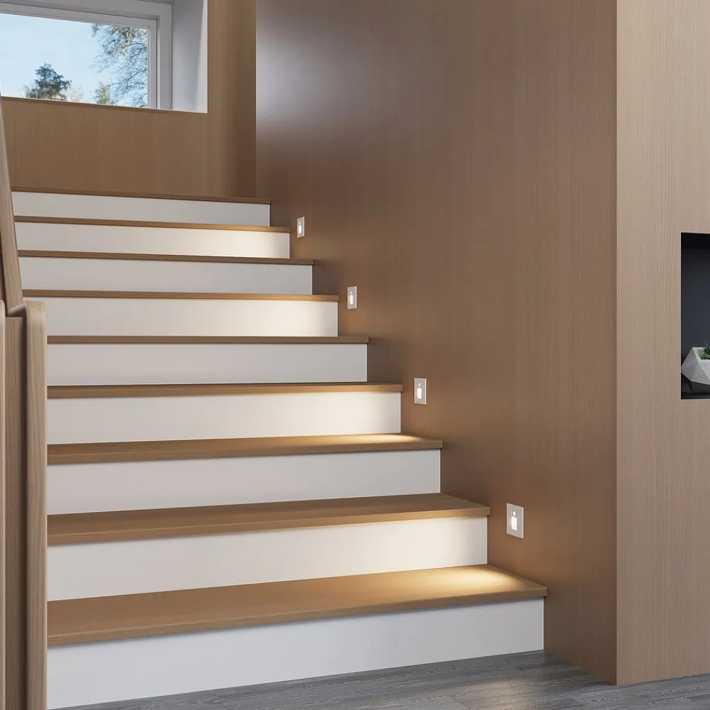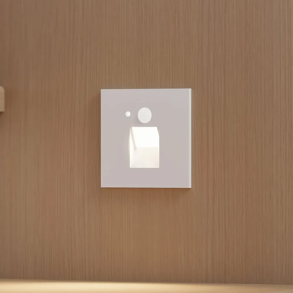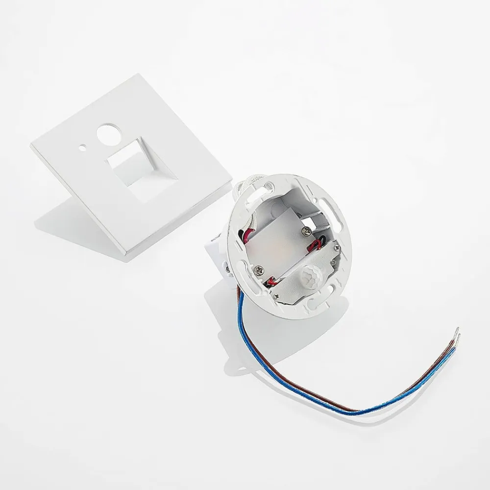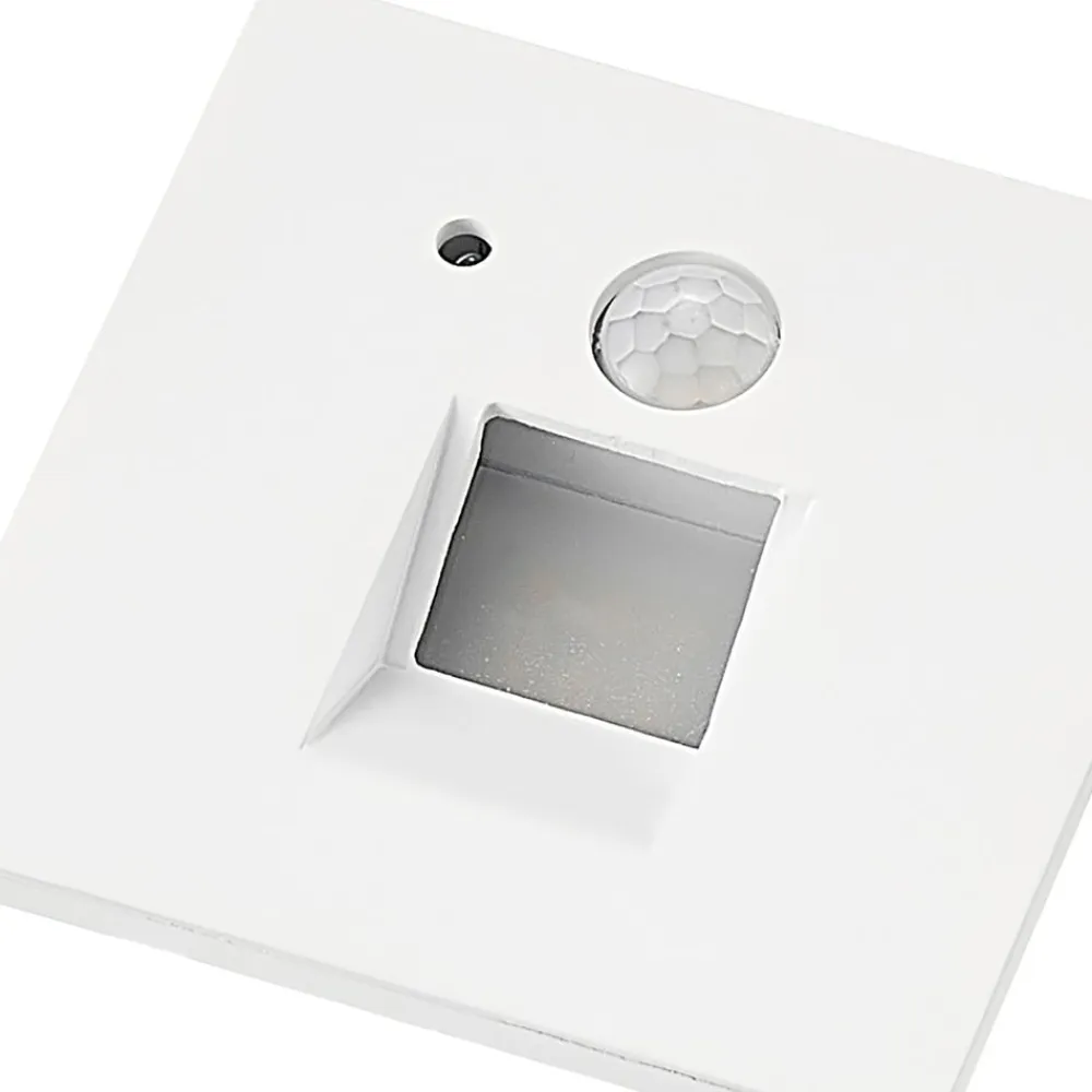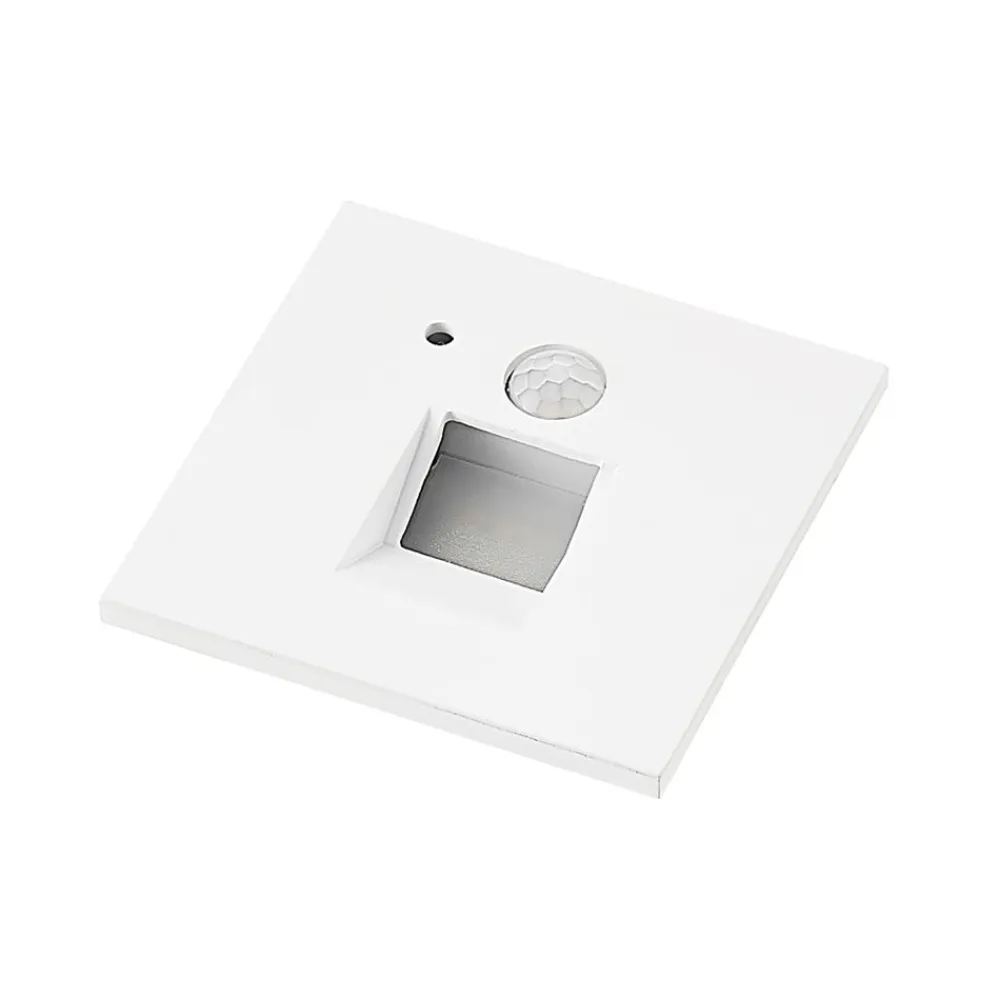Hvid LED-indbygningslampe Neru i kantet design med bevægelsessensor En indbydende trappe har brug for attraktiv belysning, så den fremhæves perfekt selv i mørke. LED-indbygningslampen Neru kan give den nødvendige belysning og har et enkelt udseende, der sætter diskrete accenter på flade vægge. Lampekroppen er lavet af aluminium og kommer i en harmonisk hvid. Efter installationen er alt, hvad der er tilbage af LED-indbygningslampen, en slank firkant på væggens overflade. De permanent installerede LED’er giver en varmhvid belysning, og bevægelsessensoren giver armaturet en vis praktisk anvendelighed.