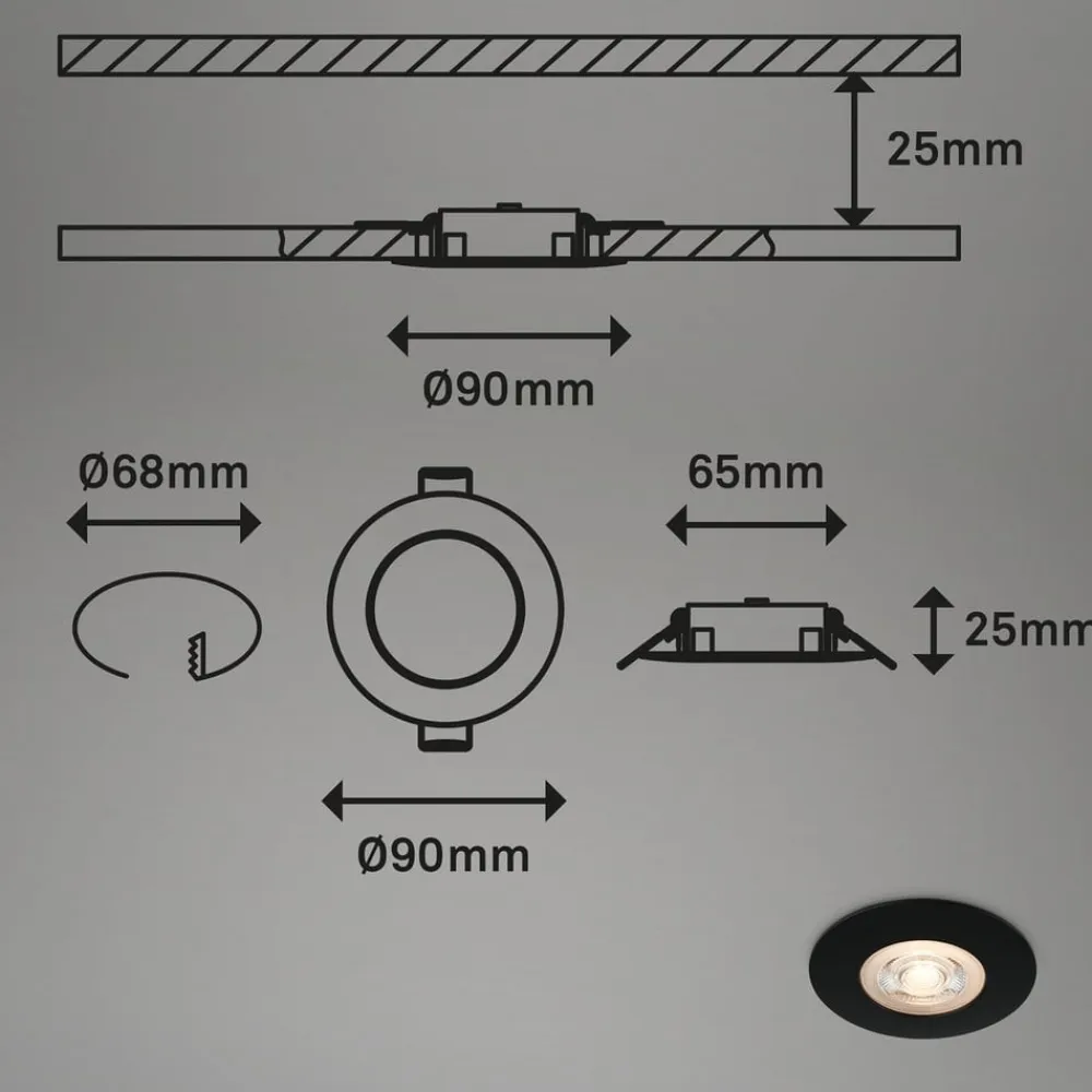 LED-indbygningsarmaturet Kulana er fremstillet af plast og har et tidløst design med sin sorte ramme, så det kan anvendes overalt fra stuen til kontoret og køkkenet. Den integrerede LED-diode udsender et varmt hvidt lys, der giver en hyggelig og behagelig atmosfære. Takket være IP65-beskyttelsesklassen er Kulana støvtæt og beskyttet mod vandstråler, så den også kan bruges på badeværelset eller endda udendørs uden problemer. Armaturet leveres i et praktisk sæt af 3 stk. og kan derfor placeres ved siden af hinanden for at skabe belysning, der dækker alle områder.
