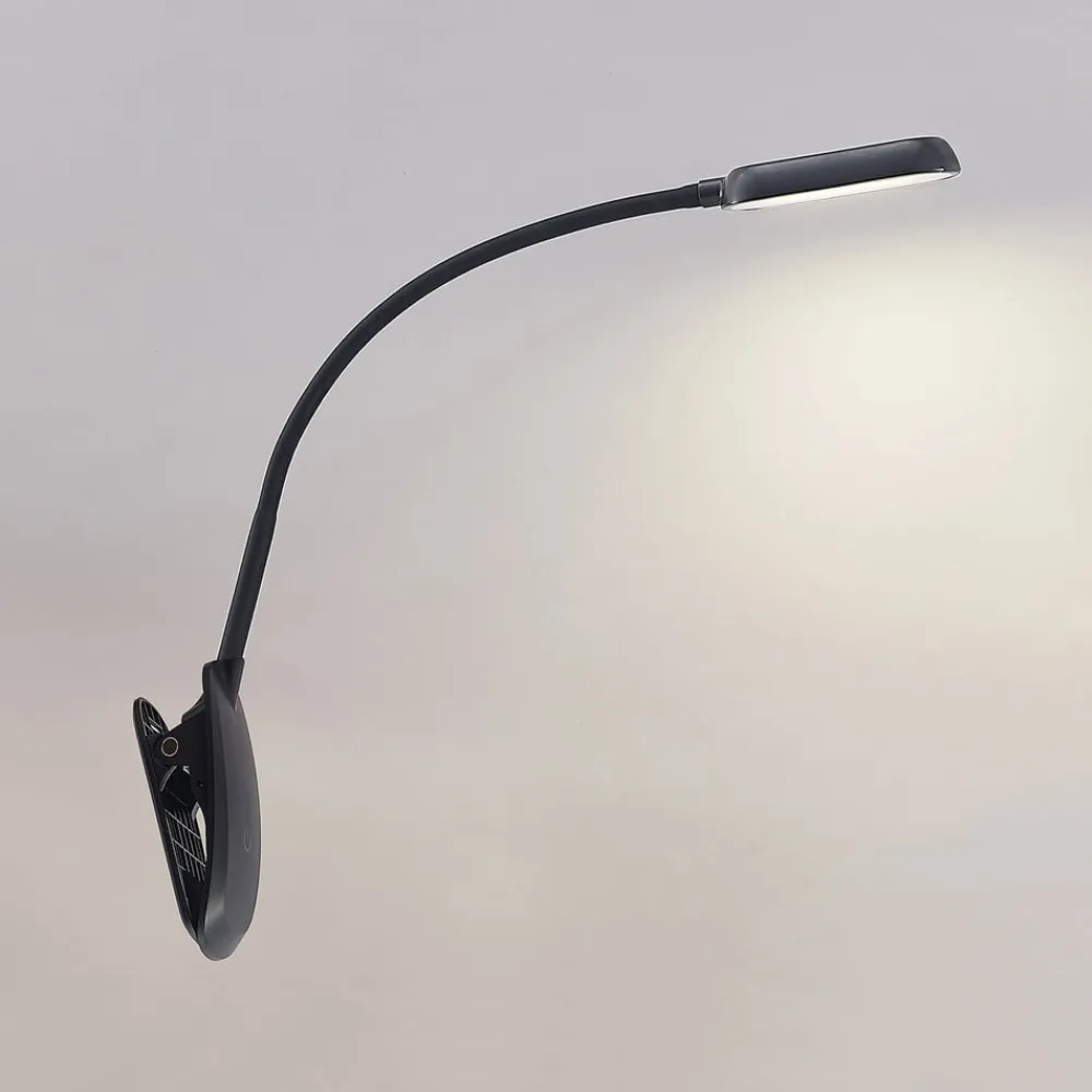 Prios LED-klemmelampe Najari, sort, genopladeligt batteri, USB, 51 cm