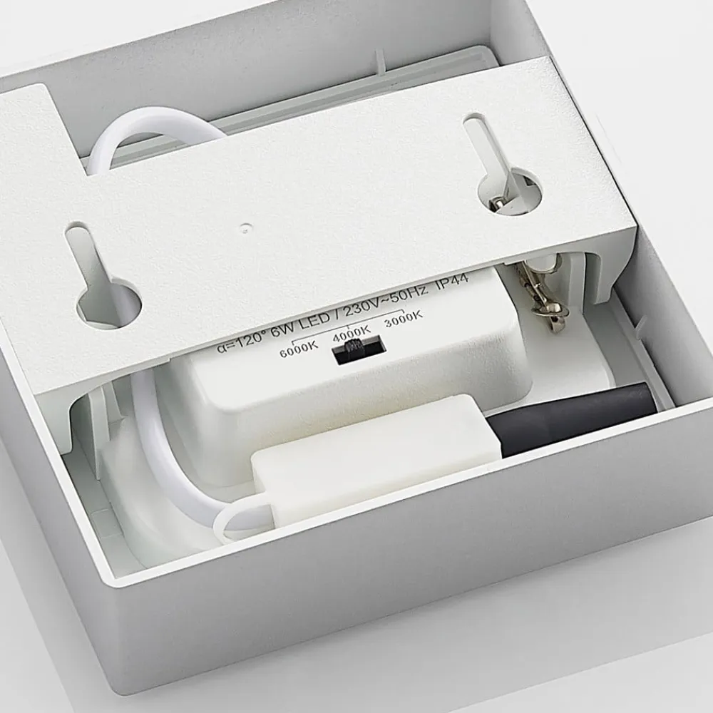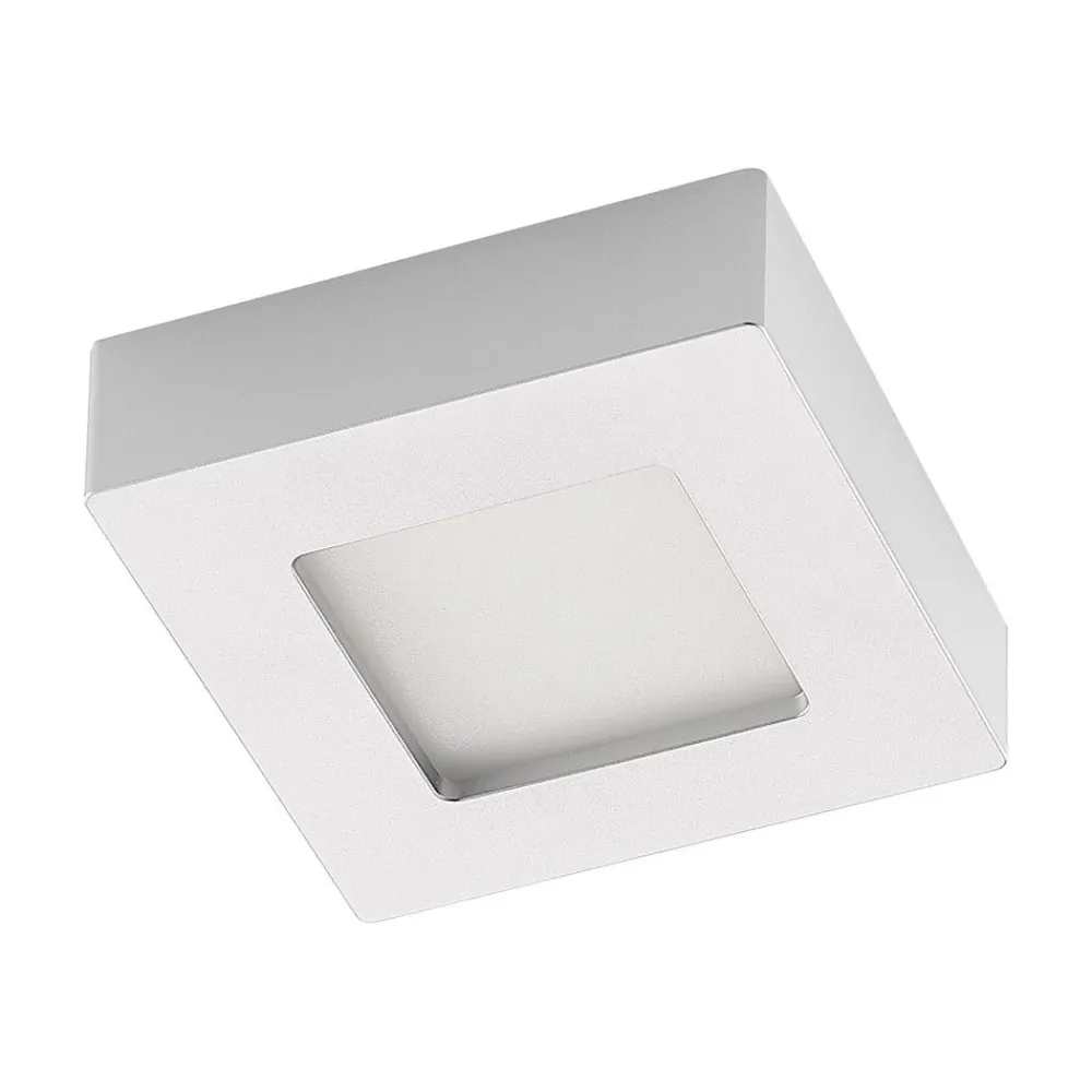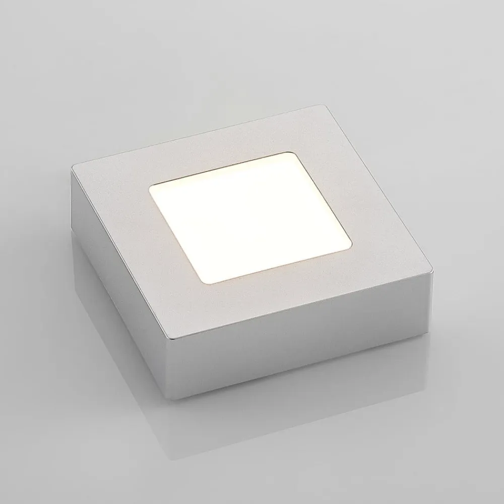 Sølvfarvet indrammet LED-fugttæt loftslampe Alette med forudindstillelig lysfarve, dæmpbar Alette er en lyskilde, der med sit enkle og relativt tidløse design kan bruges i en lang række miljøer. Grundformen er kvadratisk, og huset er malet i sølv. Derudover betyder IP44-beskyttelsesgraden, at den også kan bruges i badeværelser uden tøven, og lysfarven kan indstilles ved hjælp af DIP-kontakten – placeret på huset – som kan indstilles til tre positioner før installationen. For at fuldende udvalget af funktioner kan LED-lysets lysstyrke justeres eksternt. Med sine egenskaber kan den vinklede loftslampe bruges både til privat brug og i kommercielle miljøer. – Lysstyrken kan justeres med en ekstern lysdæmper – IP44, til fugtige rum – DIP-kontakt til valg af lysfarve før installation