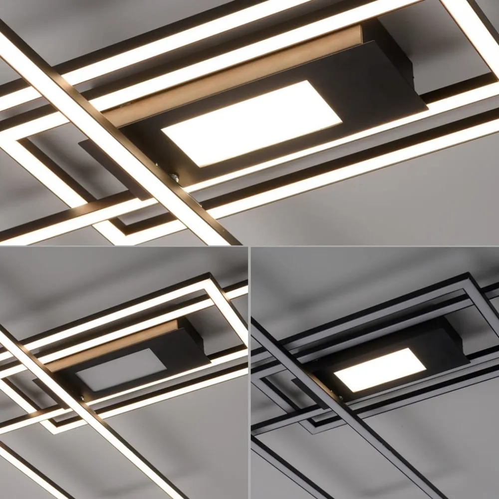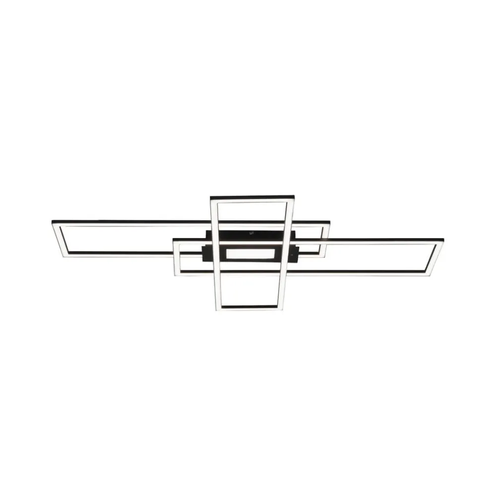 Inklusive fjernbetjening – sort LED-loftlampe Asmin med tre rektangler, dæmpbar