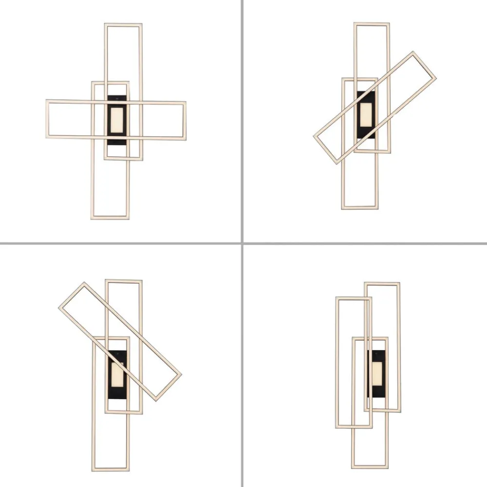 LED-loftlampen Asmin tilbyder alsidig belysning i et moderne design. Den består af tre aflange rektangler, der er forskudt i forhold til hinanden, og en central baldakin. Disse kan reguleres i fire varianter via en vægafbryder: Rektangler og baldakin i universalhvid, rektangler alene i universalhvid, baldakin alene i universalhvid eller baldakin alene i varmhvid. Der medfølger også en fjernbetjening (inkl. 2 x AAA-batteri), som gør det muligt at dæmpe, styre farvetemperaturen og tænde og slukke LED-områderne separat og som desuden har en timerfunktion, der slukker automatisk efter 1 min. Når lampen tændes igen, aktiveres den sidst valgte indstilling (hukommelsesfunktion).