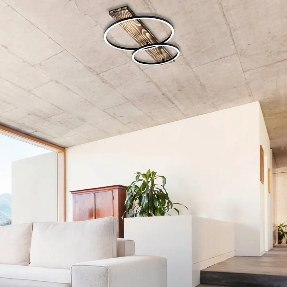 LED-loftlampe til en stemningsfuld boligatmosfære LED-loftlampen Boyal kombinerer funktionalitet med et strejf af natur takket være det brune trælook. Den er specielt designet til stuer, spisestuer og køkkener og skaber en atmosfære, der kan være både hyggelig og stimulerende. Designet med 2 lyskilder sikrer en jævn lysfordeling, der bader rummet i et behageligt lys. Brugen af LED garanterer en energieffektiv belysning, der ikke kun oplyser boligområdet, men også øger bevidstheden om bæredygtigt forbrug. Med den 2 lyskilder Boyal LED-loftlampe bliver lyset et designelement, der subtilt påvirker stemningen i rummet og samtidig opretholder en balance mellem æstetik og økonomi.