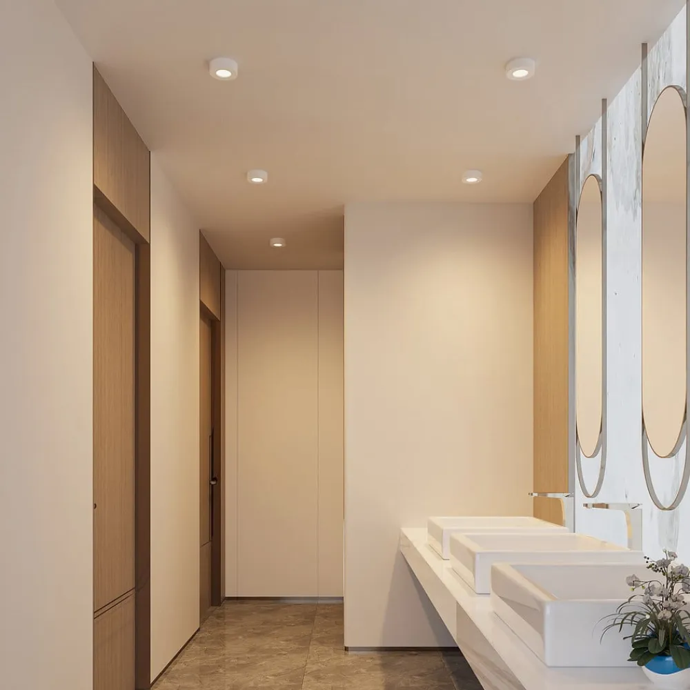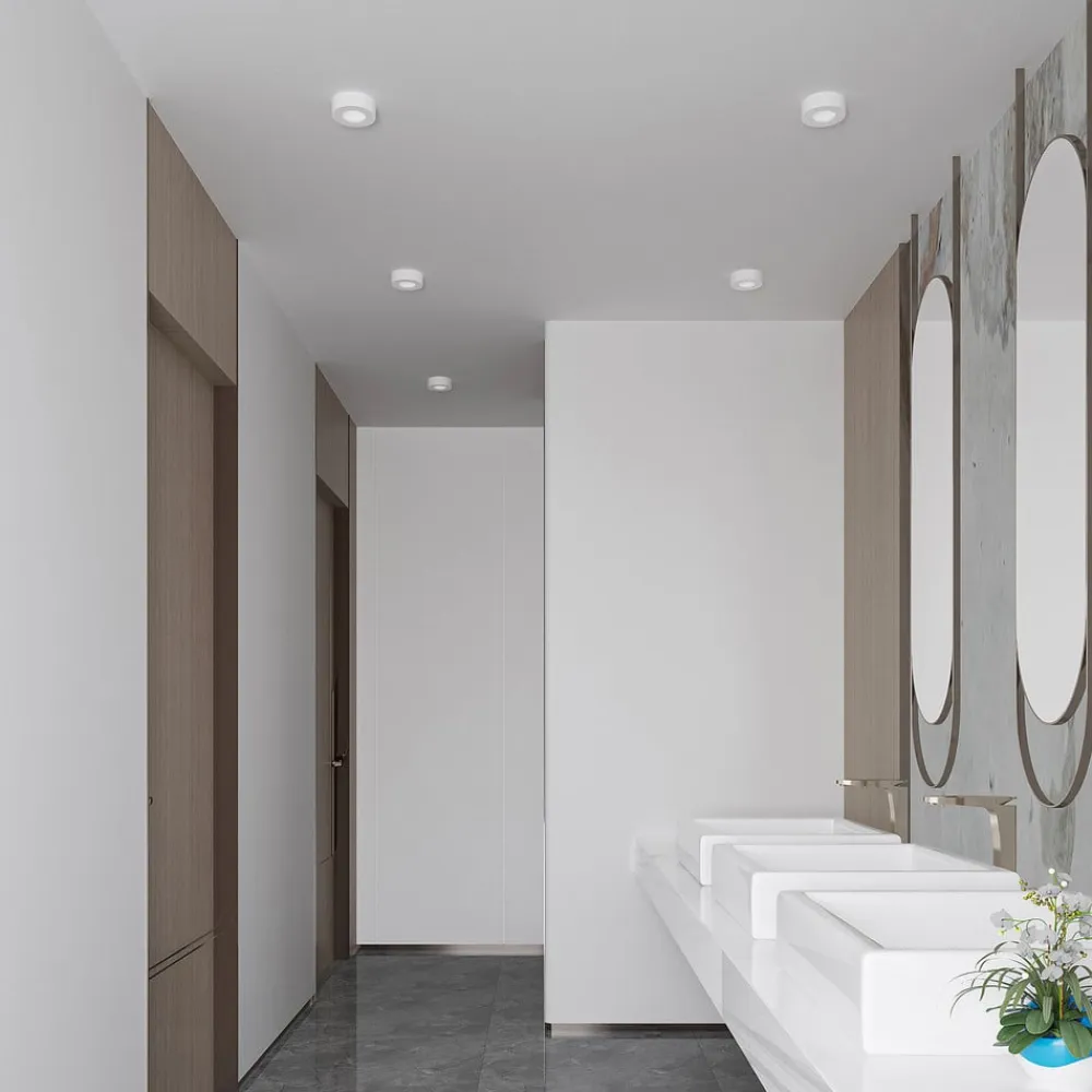 Edwina rund LED-loftlampe med forindstillelig lysfarve, IP44 Denne loftlampe med sine fastmonterede LED’er er en enkel lyskilde til utallige lejligheder, som kan bruges både privat og kommercielt. Den runde form og det hvide overfladedesign er særligt tidløst, og Edwina er også teknisk velegnet til mange steder og anvendelser, da lysfarven kan forudindstilles før installation ved hjælp af en integreret DIP-kontakt på huset, og kapslingsgraden gør det også muligt at bruge den i vådrum, da LED-loftlampen er tilstrækkeligt forseglet til at forhindre, at der kommer vandsprøjt ind. Med den brede strålevinkel kan større områder også belyses godt, og lysstyrken kan også justeres via en ekstern dæmper, hvis det er nødvendigt – IP44, til badeværelser og fugtige rum – Lysfarve kan forudindstilles via DIP-kontakt