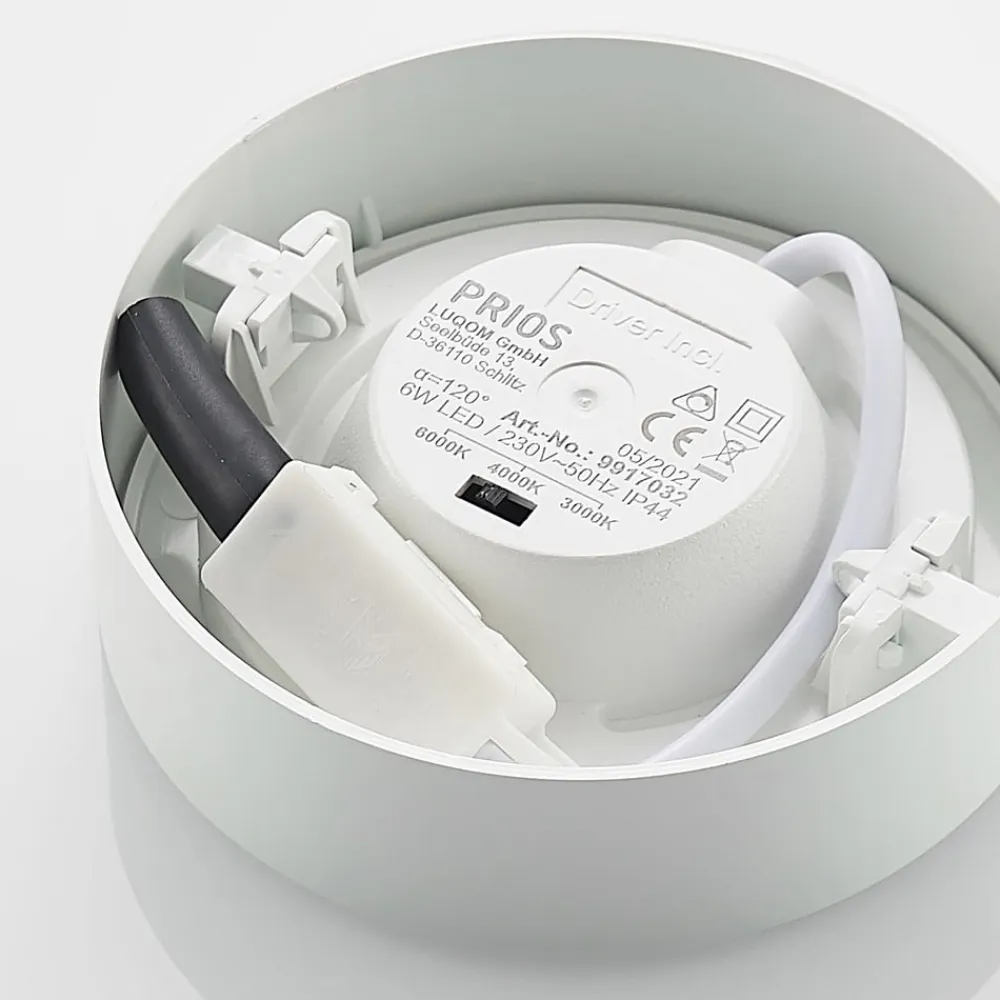 Prios LED-loftlampe Edwina, hvid, 12 cm, CCT, IP44