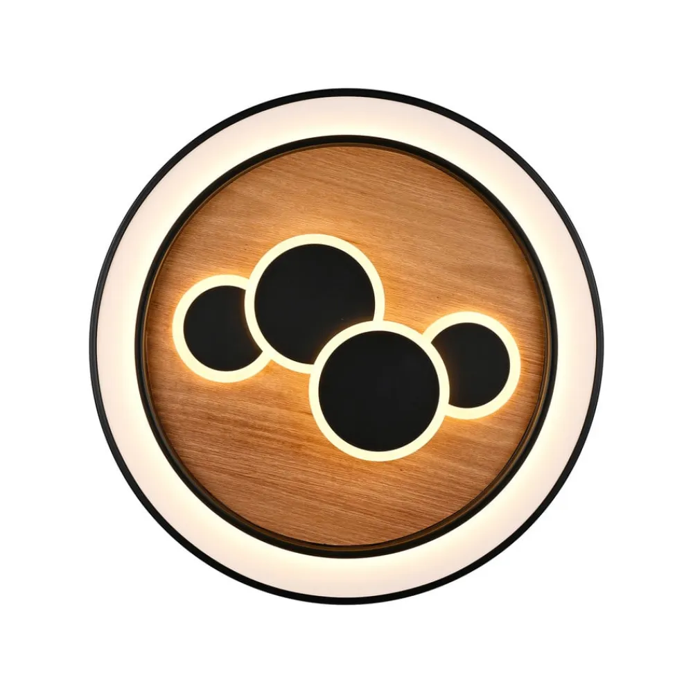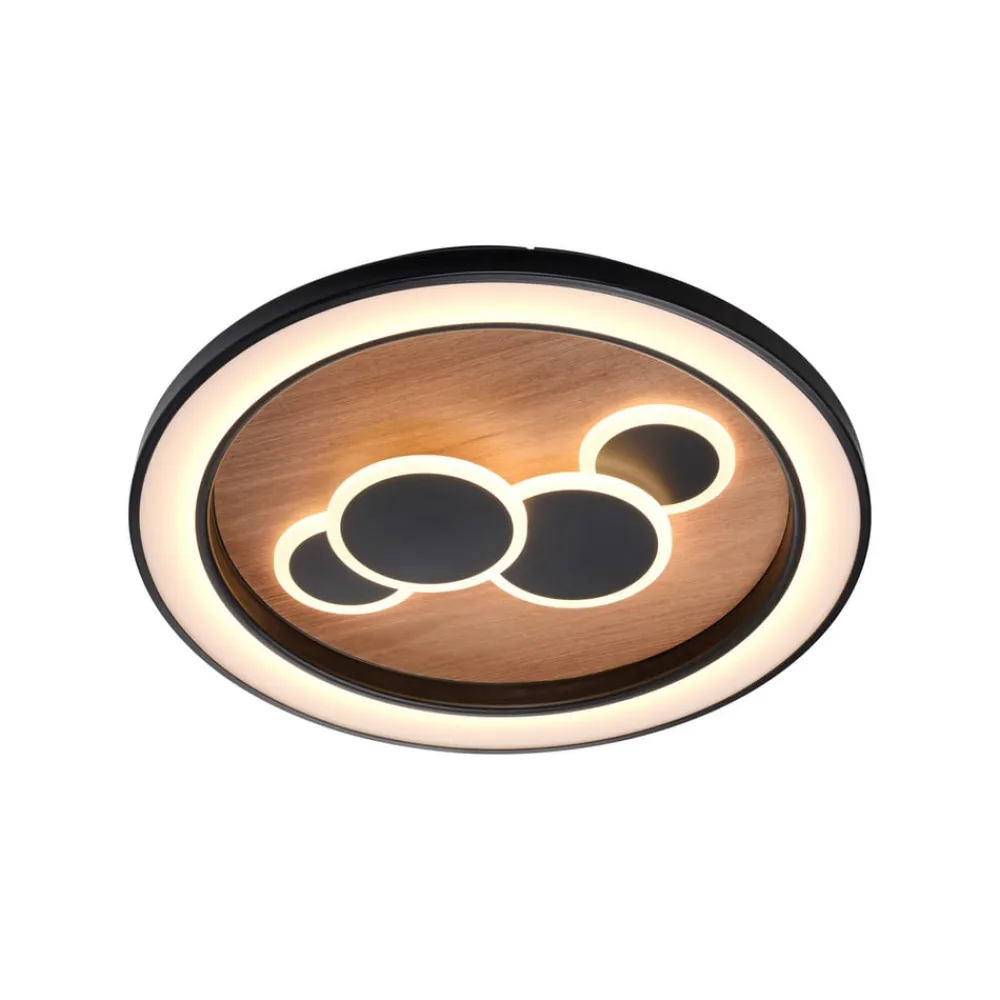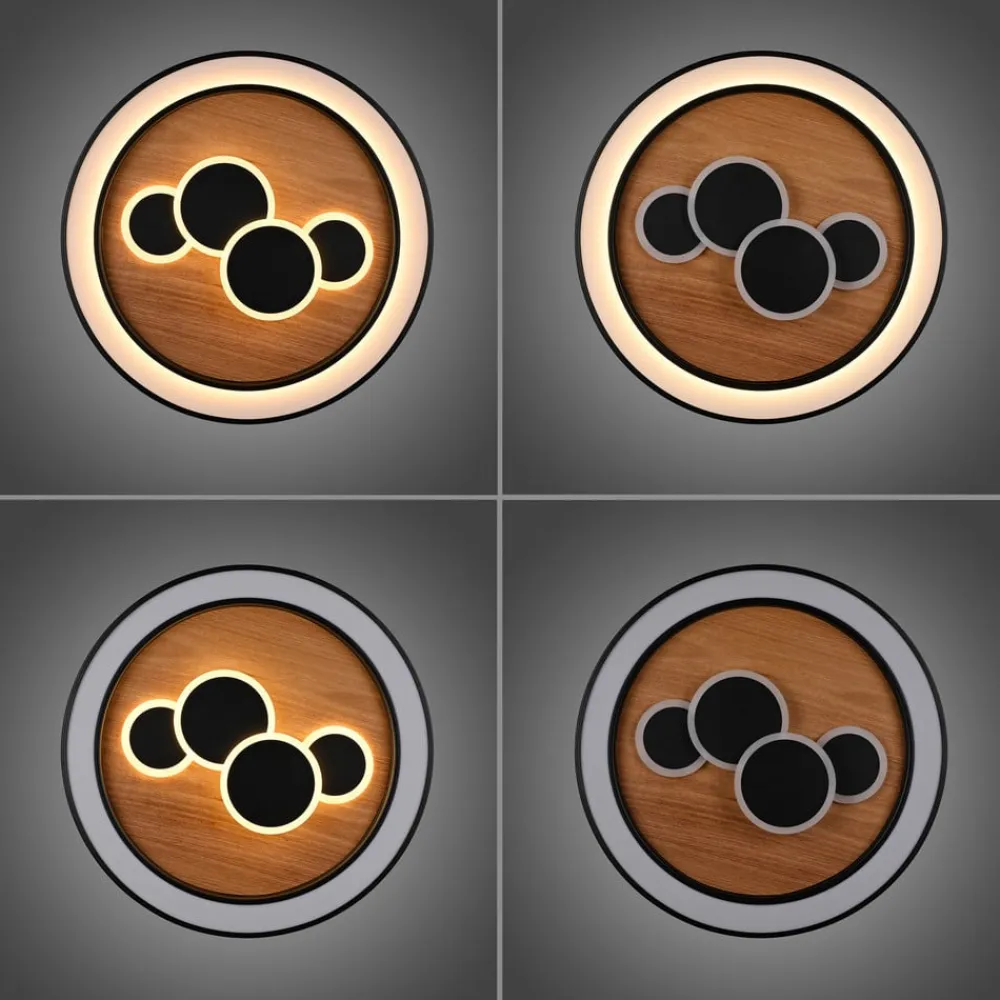 Kraftfuld Eliza LED-loftlampe – rund Eliza LED-loftlampen er en perfekt kombination af moderne teknologi og naturligt design. Med sit runde og tidløse look passer den perfekt ind i ethvert hjem. Den høje lysstrøm sikrer fremragende belysning i alle rum. Det olierede egetræ giver lyset en naturlig flair og giver rummet et varmt og hyggeligt udseende. Uanset om det er i stuen, soveværelset eller gangen – LED-loftlampen Eliza er et ægte blikfang og et must-have for alle, der leder efter en stilfuld og funktionel belysningsløsning – Seriebryder via vægkontakten: 1 x kontakt: alle tændt, 2 x kontakt: inde, 3 x kontakt: ude