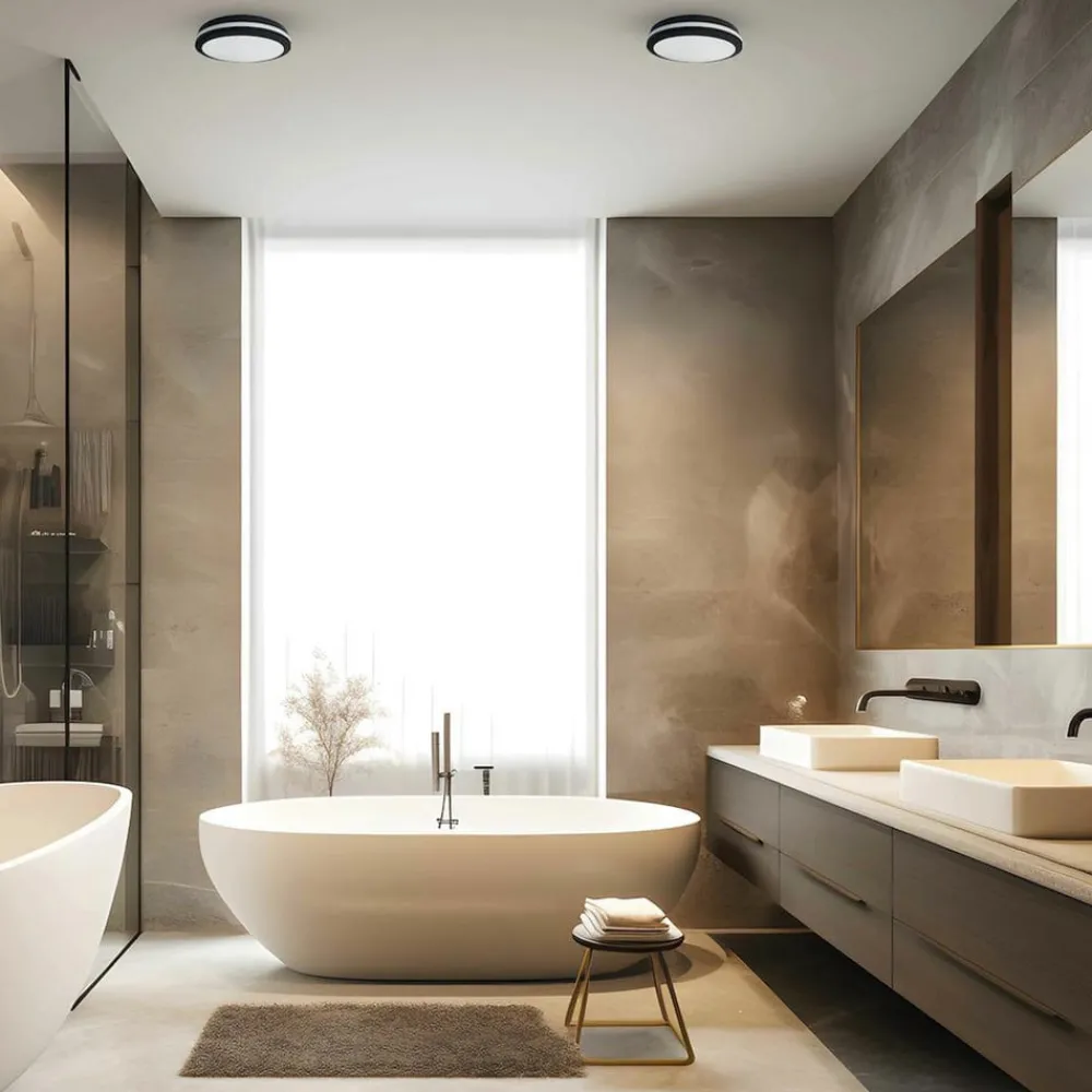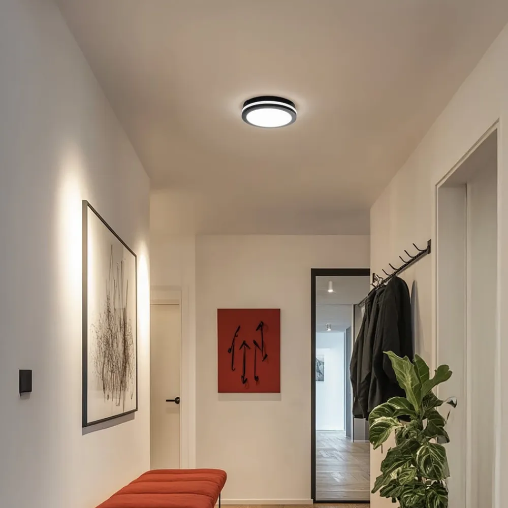 LED-loftlampen Marlon imponerer med sit moderne design og er fremstillet af polycarbonat. Med en kapslingsgrad på IP54 er den optimal til brug på altaner og terrasser, da den er pålideligt beskyttet mod stænkvand og støv. Den fast integrerede LED-lyskilde sikrer en jævn belysning og giver et energibesparende lys i universalhvid med 4.000 Kelvin, der skaber en behagelig og funktionel atmosfære. Den enkle farve i sort og hvid passer nemt ind i de fleste byggestilarter.