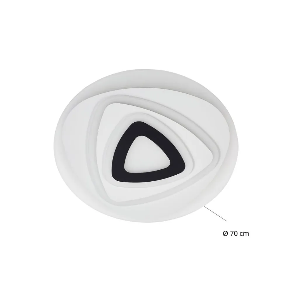 LED-loftlampen Rebeka tilbyder en imponerende kombination af funktionalitet og moderne design. Med en diameter på 70 cm passer den perfekt ind i forskellige boligområder som spisestue, stue og entre. Lampen er fremstillet af højkvalitets plast og jern. Den integrerede LED-lyskilde sikrer energibesparende lys, der kan indstilles i forskellige farvetemperaturer fra varmhvid til dagslys hvid ved hjælp af den regulerbare lysfarve (CCT). Derudover er LED-loftlampen Rebeka dæmpbar i 4 trin (75 %, 50 %, 20 % og 10 %). CCT-funktionen kan styres ved hjælp af en almindelig vægkontakt eller den medfølgende fjernbetjening. Dæmpningen fungerer kun via fjernbetjeningen.