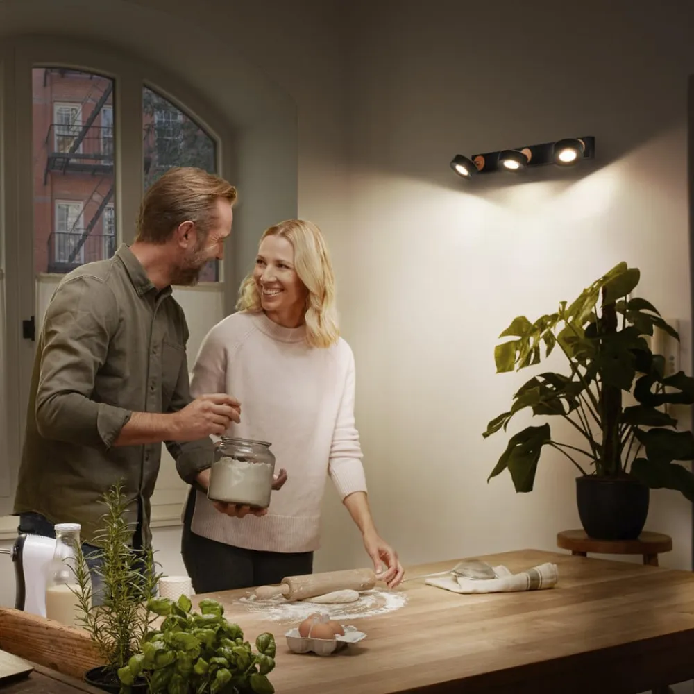 Trelys Pluto LED-loftspot med træelementer Den lange, trelys Pluto LED-loftspot er lavet af stål med en mat finish, træ og polykarbonatafdækninger. Både den lange baldakin og bagsiden af spottene er udsmykket med runde, flade træskiver. De tre spots, hvorigennem det varmhvide lys fra de indbyggede LED’er udsendes i en bred vinkel, kan justeres efter behov. Pluto-armaturserien fra Ledvance er ideel til alle indvendige anvendelser, fra stuer til gange og soveværelser – hus i høj kvalitet med mat finish – nem installation – komplet monterings- og tilslutningsudstyr medfølger