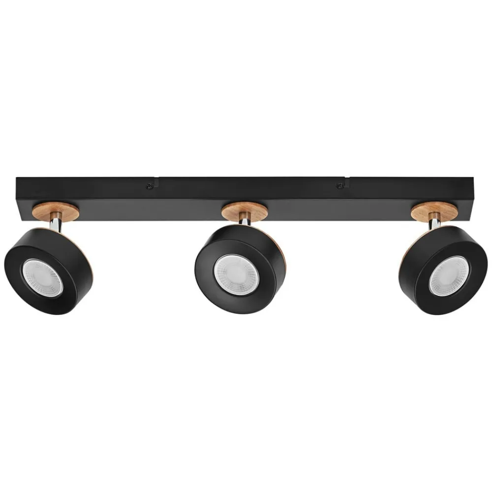LED-loftspot Pluto, stål, træ, 3-lys, sort^LEDVANCE New