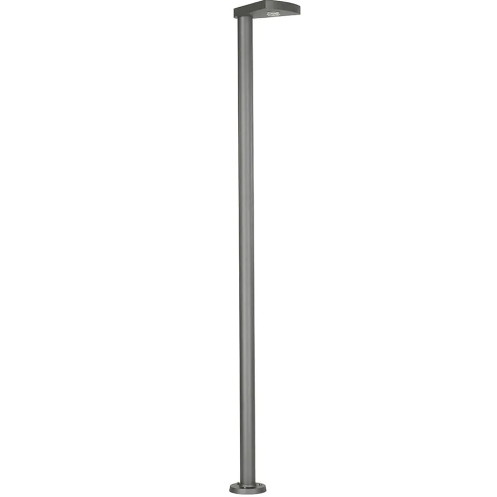 LED-lygtepæl 866 i moderne design LED-lygtepælens udseende og design får den bestemt til at fremstå moderne og innovativ på samme tid. Hovedfokus er på lampeskærmen med sin særlige form, som retter lyset nedad. Den troner på den støbte aluminiumsstang i tre meters højde. I omgivelserne omkring moderne private hjem eller offentlige bygninger gør denne lygtepæl en fremragende figur og giver et klart, varmhvidt lys. Den matchende jordmonteringsbase kan bestilles direkte via tilbehøret – Anbefalet lyspunktafstand: 16 meter – Med monteringsplade