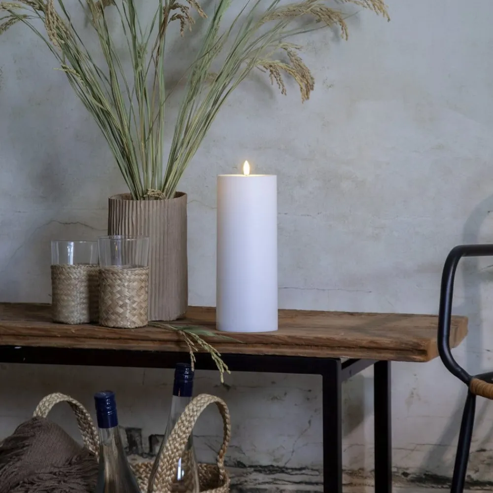 LED lys Flamme Rak 27,5 cm hvid plast batteridrevet^STAR TRADING New