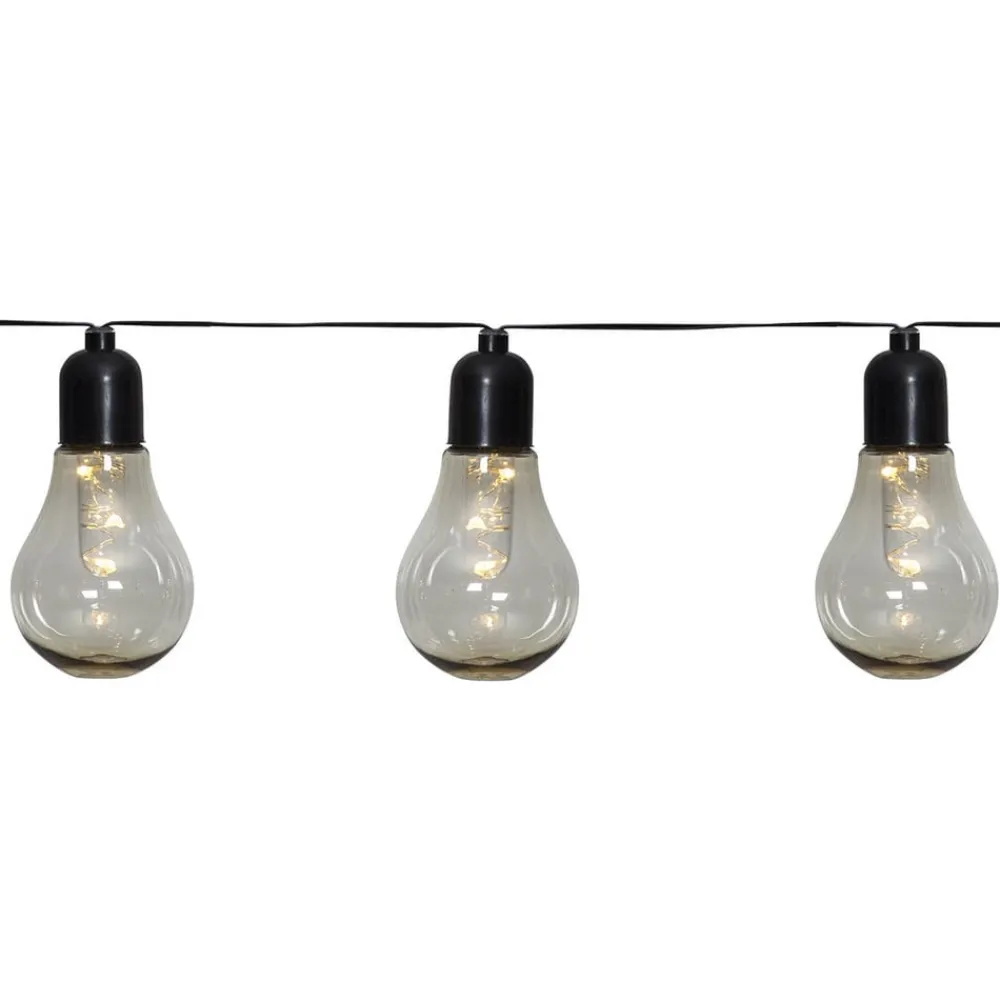 Lampeskærmene på LED-lyskæden Glow består af plast og trodser takket være kapslingsklasse IP44 også hårde vejrforhold. Lyskæden er dermed også egnet til permanent udendørs brug. Inde i hver lampe befinder der sig tre fast indbyggede LED’er, der fås til at lyse med batteri. Batterierne kan skiftes ud og er ikke omfattet af leverancen. Batterierne kan bestilles under tilbehør. Desuden har lyskæden en timer, der selvstændigt tænder og slukker lampe alt efter programmeringen.